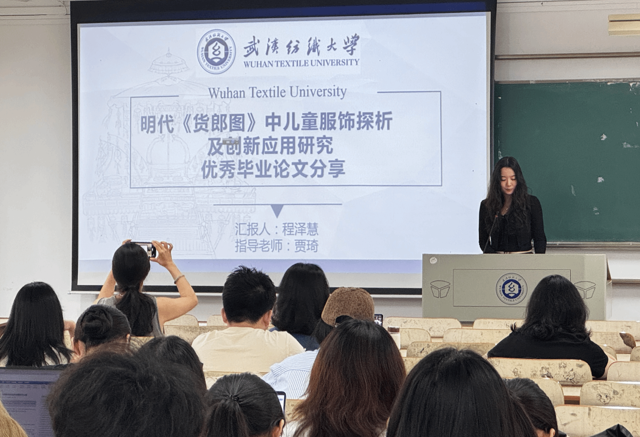 程泽慧同学分享的论文为《明代《货郎图》中儿童服饰探析及创新应用研究》。该研究聚焦于绘画所呈现的明代《货郎图》中的儿童服饰。对明代《货郎图》里儿童服饰的形制、纹样以及色彩元素进行了全面且细致的收集、整理与解读工作,为现代童装的创新设计提供了重要的思路与借鉴。 她建议同学们善用数字化与AI等现代工具,注重批判性思维能力提升。