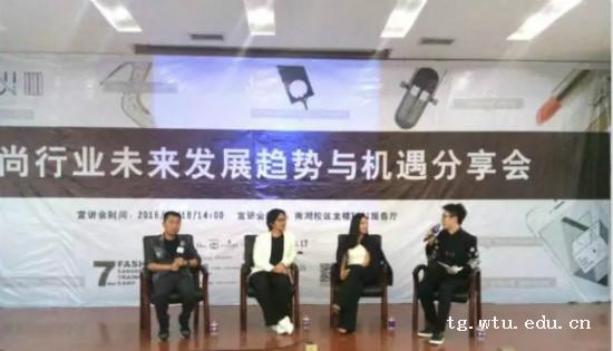 10月18日下午“时尚行业未来发展趋势与机遇分享会”在我校南湖校区成功举办。清华大学时尚教育办公室主任、清华大学GUCCI艺术基金秘书长张梓楦,“固美”创始人李固一、知名媒体人马人人以及中国体育博彩 副院长袁大鹏、中国体育博彩 设计系副主任黄李勇老师出席了本次活动。