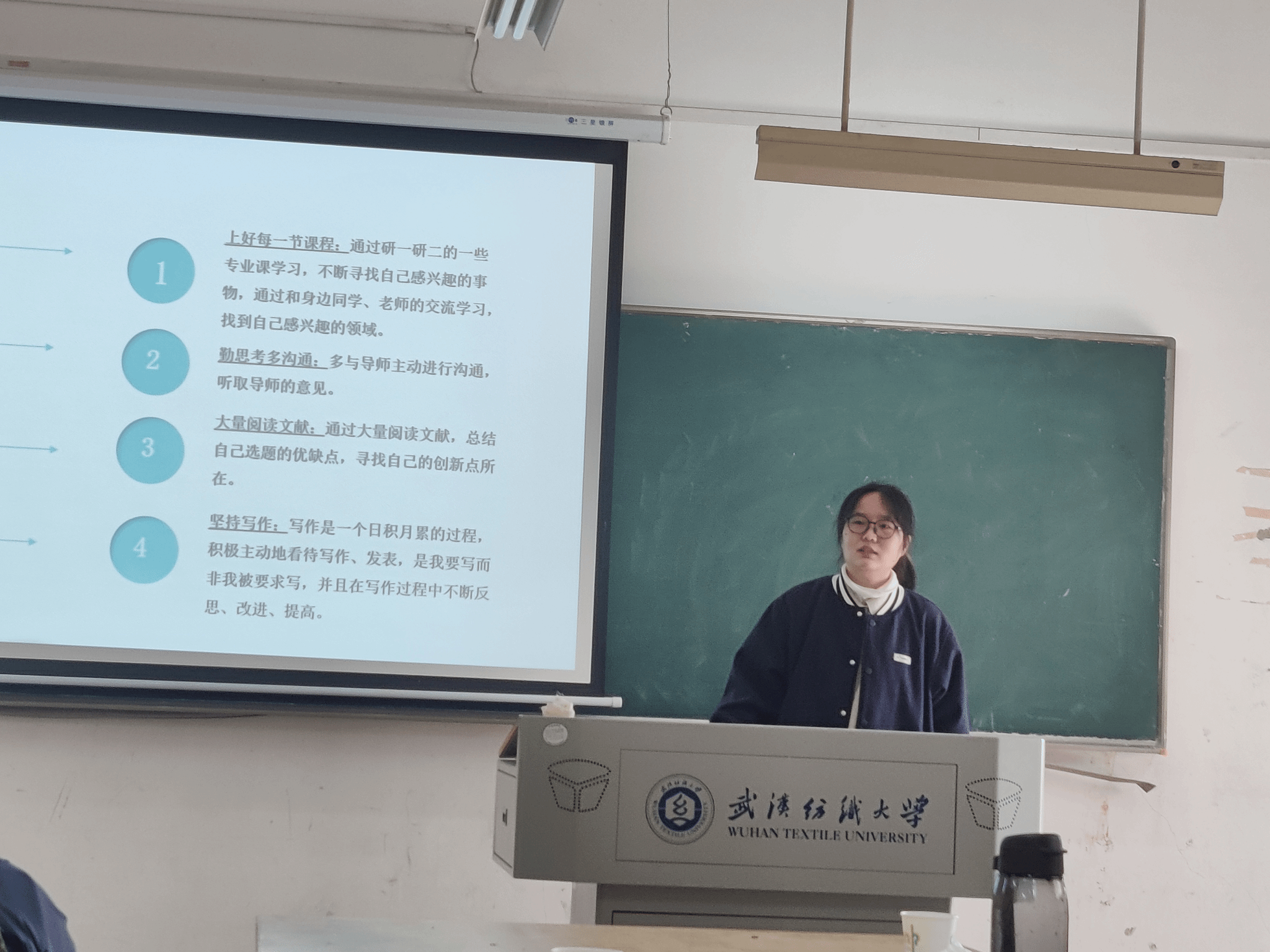 举办了第二十三期“衣·问”研究生论坛,活动地点位于综合楼601教室。此次论坛旨在为研究生同学提供一个分享论文写作经验的平台。特邀请了21级纺织科学与工程专业的黄卓同学,以及21级艺术设计专业的郑新同学和李艳芳同学作为分享嘉宾,分享他们在论文写作过程中的心得体会。论坛由院办的徐老师主持,点评嘉宾则是武汉纺织大学沙莎副教授。