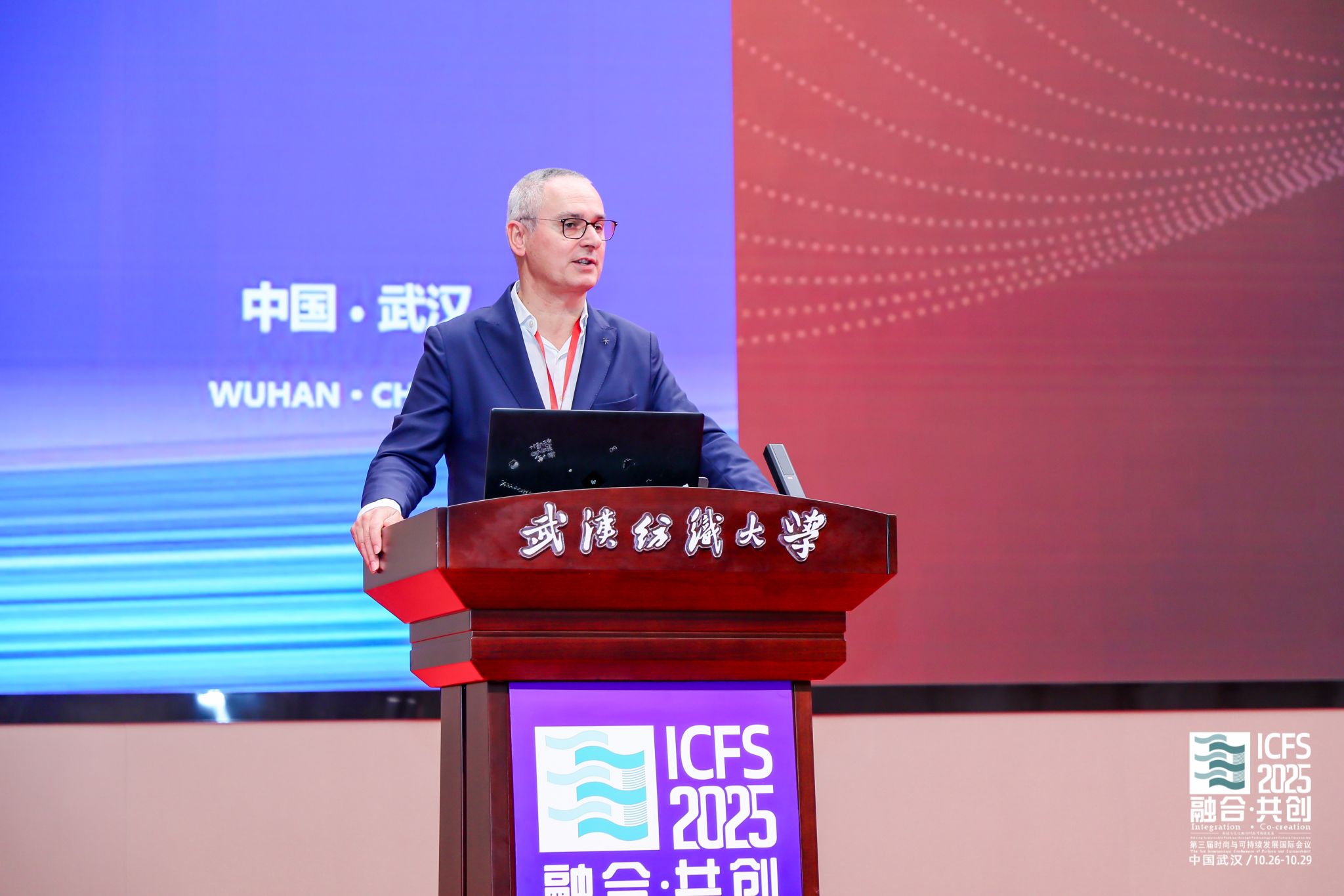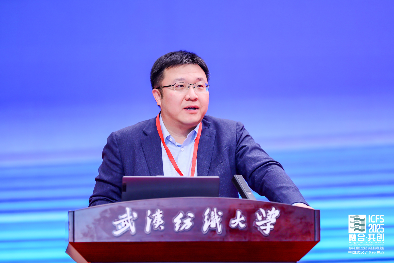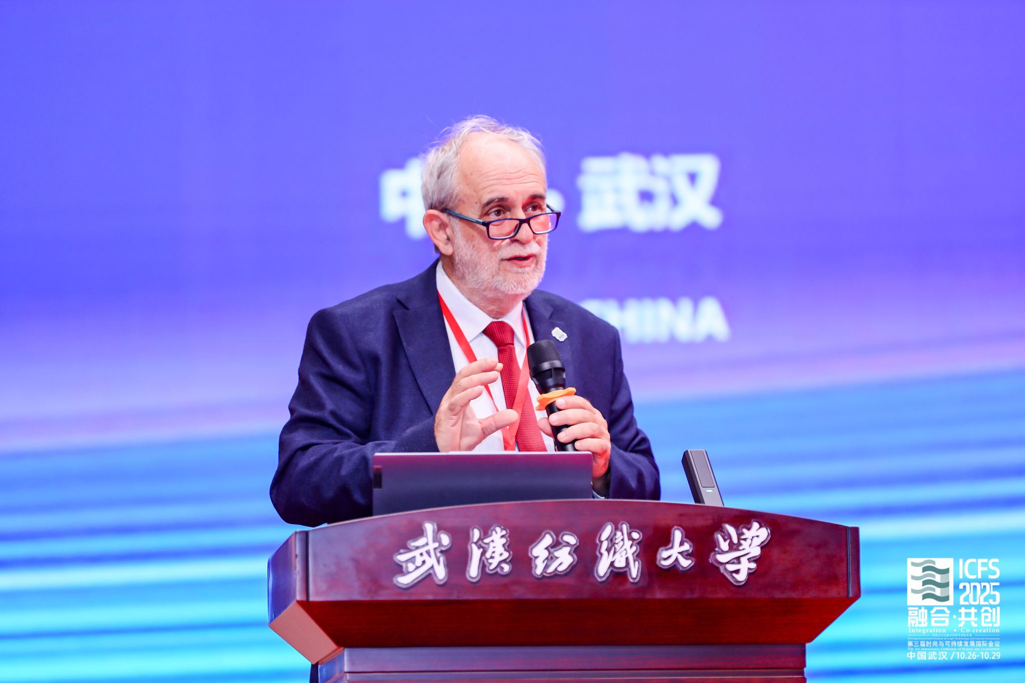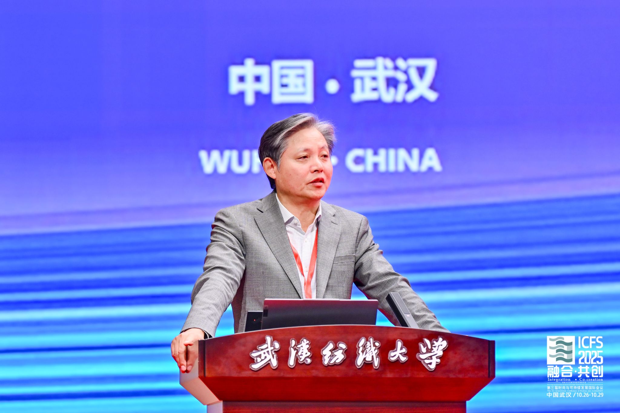 武汉纺织大学校长傅欣教授在开幕式致辞中指出,推动绿色低碳发展是全球共识与高质量发展的关键。本届会议主题精准把握了产业变革核心,将为全球时尚产业注入新智慧。作为国内唯一以“纺织”命名的高校,学校坚持特色发展,纺织学科稳居全球前列,在月面国旗、全国重点实验室等科技创新上取得突破,中国体育博彩 深耕智能穿戴等领域,培养的新质人才成果显著。期待通过本次会议搭建高水平平台,汇聚全球智慧,共同开创时尚产业更可持续的未来。