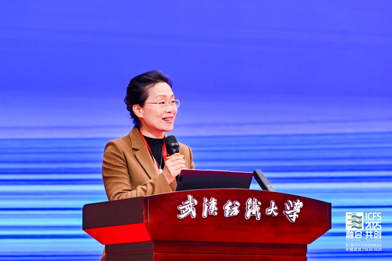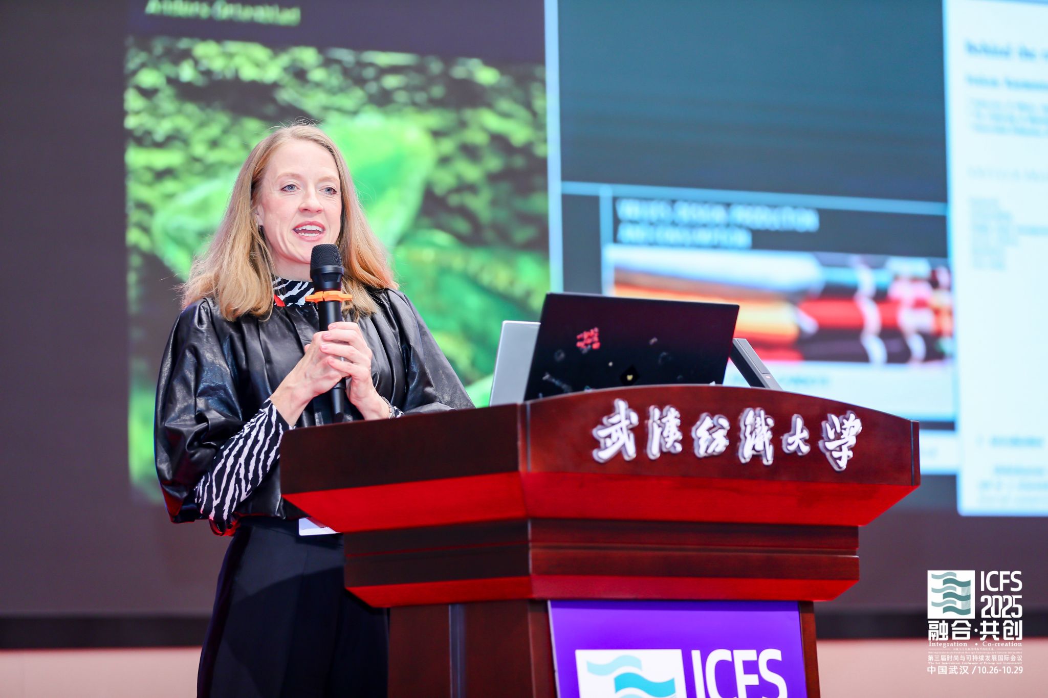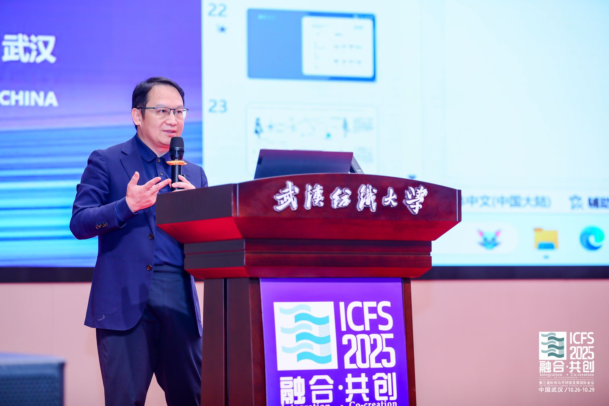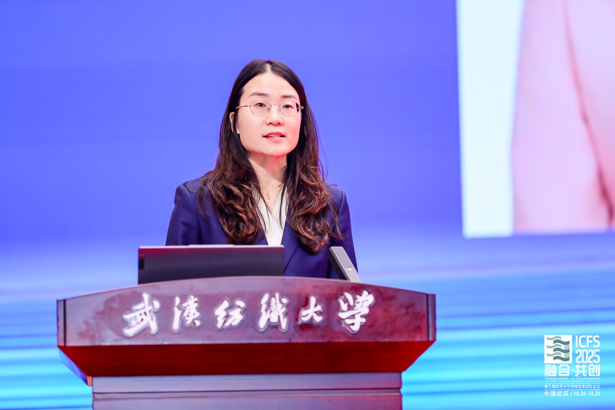 武汉纺织大学校长傅欣教授在开幕式致辞中指出,推动绿色低碳发展是全球共识与高质量发展的关键。本届会议主题精准把握了产业变革核心,将为全球时尚产业注入新智慧。作为国内唯一以“纺织”命名的高校,学校坚持特色发展,纺织学科稳居全球前列,在月面国旗、全国重点实验室等科技创新上取得突破,中国体育博彩 深耕智能穿戴等领域,培养的新质人才成果显著。期待通过本次会议搭建高水平平台,汇聚全球智慧,共同开创时尚产业更可持续的未来。