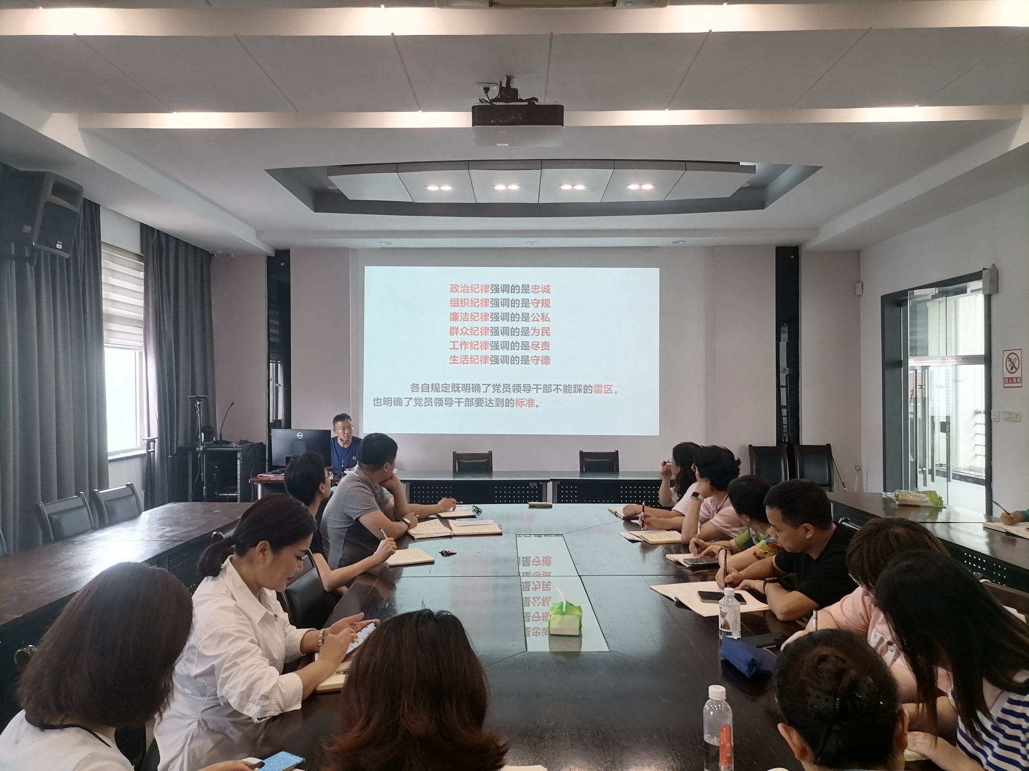 事业高质量发展为主题,从《中国共产党纪律处分条例》的内容、重视学习落实《中国共产党纪律处分条例》的重要意义、基层党组织建设和党员队伍建设的要求和路径、党的建设与教育事业深度融合的意义和要求引入,围绕加强党纪学习教育“总则要求”展开,结合《晒一晒“象牙塔”里的那些官僚主义》这篇文章简简述了高校教育管理过程中存在的问题,并结合典型案例,深入分析剖析,讲授了一堂主题鲜明、内容丰富的党课。