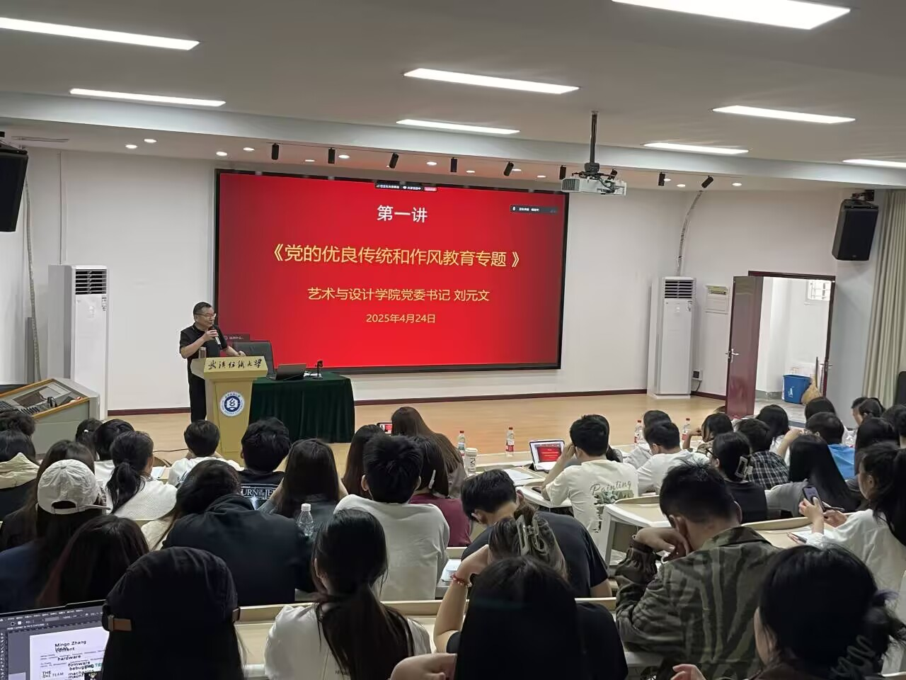 在专题党课中,刘元文以《党的优良传统和作风教育》为题进行授课。通过系统梳理党的百年奋斗历程,重点阐述了“理论联系实际”“密切联系群众”“批评与自我批评”等五大优良传统的内涵与要义,并结合新时代青年的使命担当,深入分析了传承红色基因的时代价值。