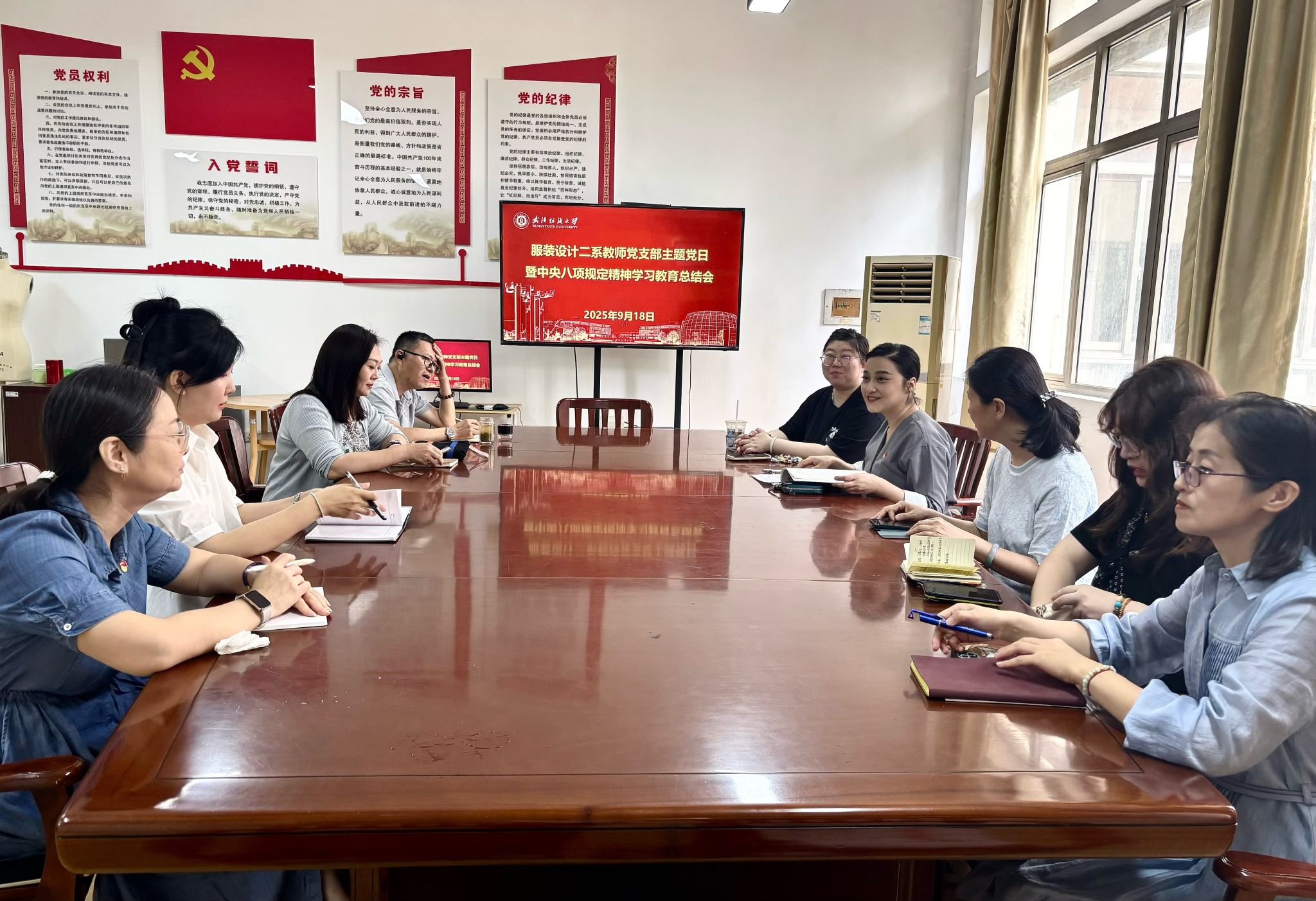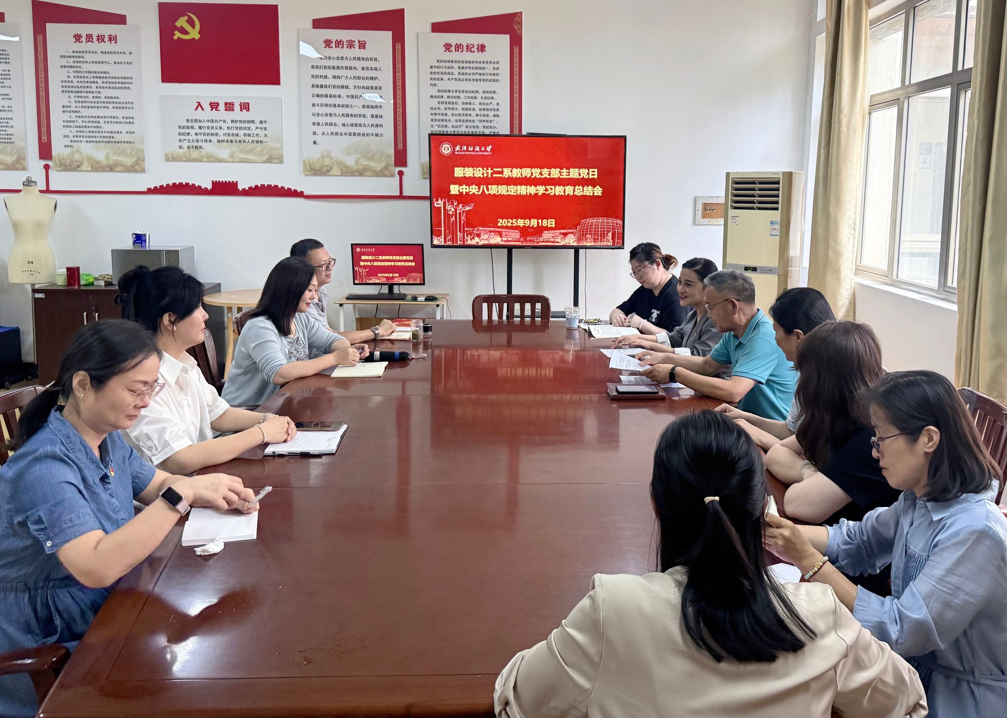 服装设计二系教师党支部召开支部主题党日暨中央八项规定精神学习教育总结会。支部全体成员参会,由服装设计二系教师党支部书记钟蔚主持。