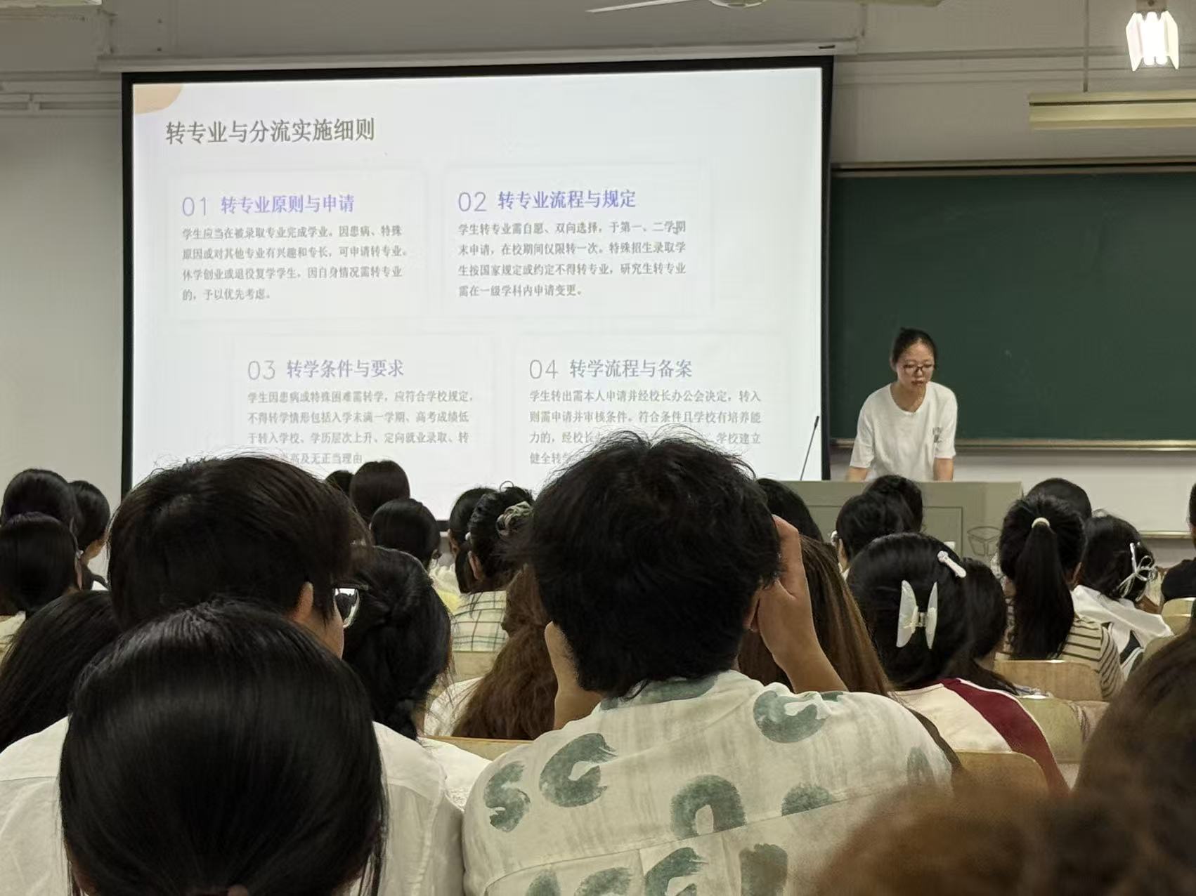 在思想引领与制度教育方面,高雪、陈彦君等学生党员骨干为新生带来了深刻而实用的一课。他们不仅详细讲解了入党入团的基本流程与重要意义,鼓励新生积极向党团组织靠拢,还围绕《学生手册》中的日常管理与教学管理规定进行了细致解读,帮助新生树立规矩意识,筑牢行为底线,为营造风清气正的校园环境打下了坚实基础。