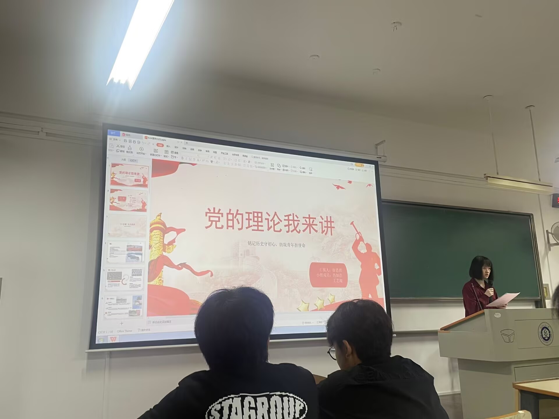 此外,活动还特别关注新生的心理健康与人文素养。陈君怡等同学聚焦大学生心理健康主题,分享了压力调适、情绪管理与人际沟通等方面的实用技巧,倡导积极健康的学习生活方式。徐思琪等同学则围绕“党的理论我来讲”,将宏大主题与大学生发展相结合,重点围绕“九三阅兵”精神等主题,阐释坚韧不拔的学习态度与家国情怀的内在联系,提升新生的思想认同与综合素养。