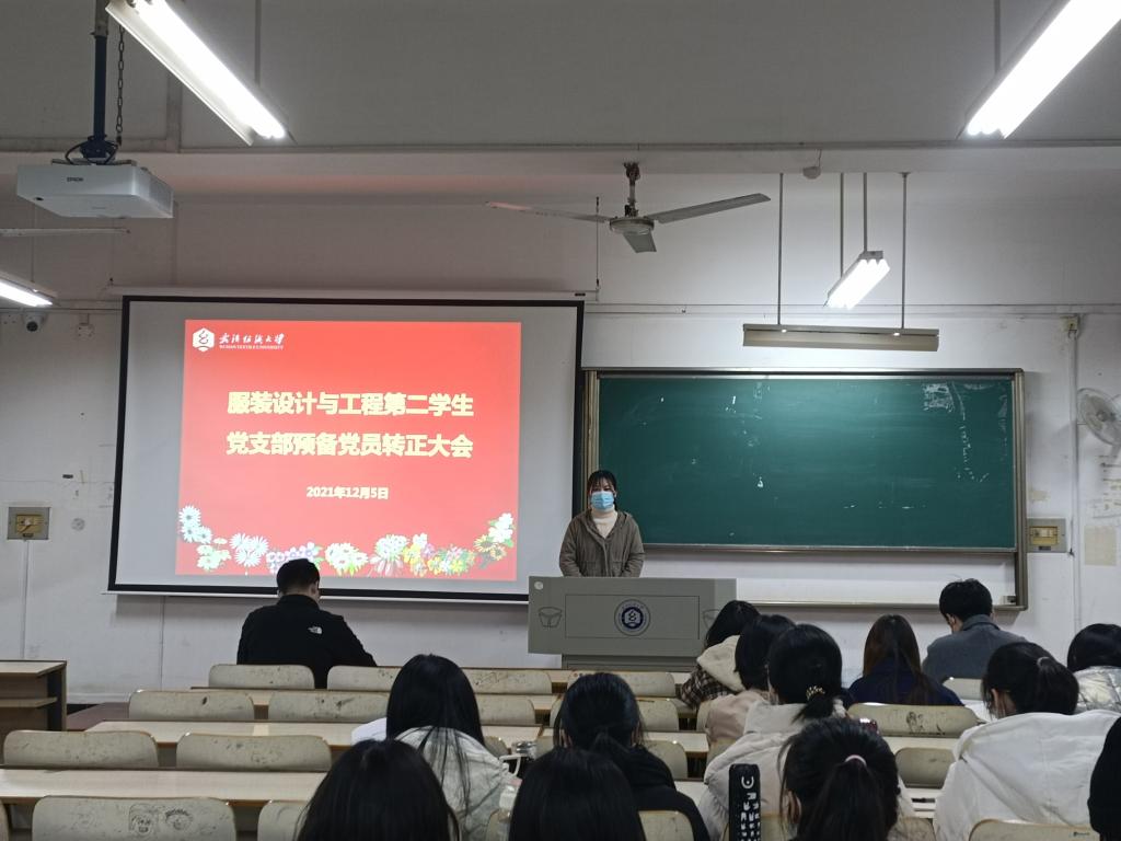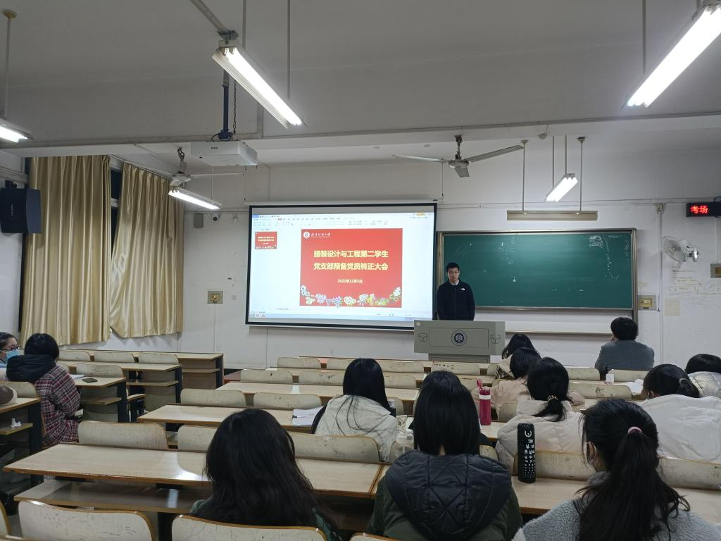 服装设计与工程学生第二党支部预备党员转正大会在综合楼5510教室成功召开。支部全体正式党员、预备党员、发展对象参加本次大会,会议由党支部书记冯江老师主持。