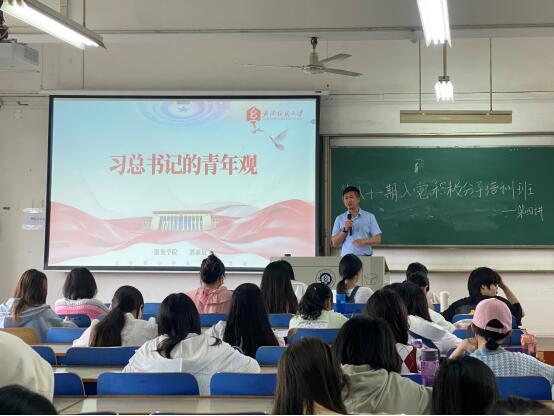党委副书记郭泰辰以“习近平总书记的青年观”为题,在综合楼5510、5509教室为入党积极分子讲授党课,本次党课由支部书记冯江主持。