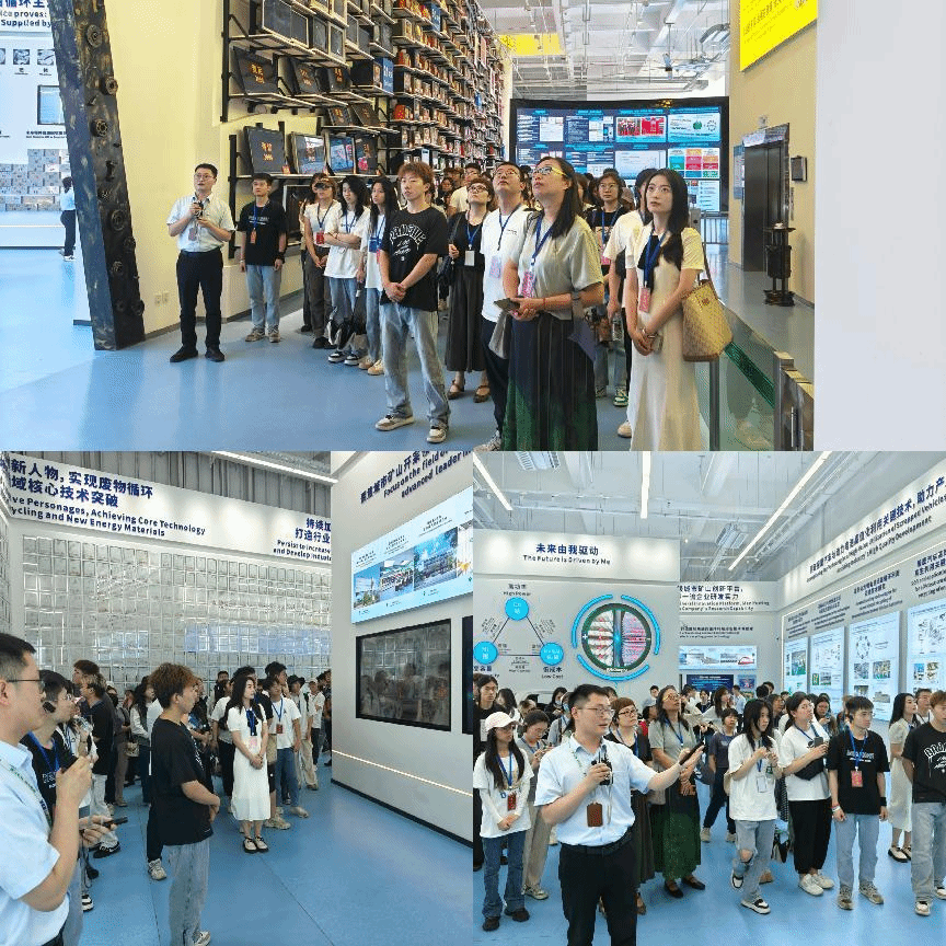 首先,师生们共同参观了格林美资源循环生态场馆,该场馆围绕城市矿山循环产业园的创建背景、主营业务以及未来发展讲述了格林美20余年来的绿色奋斗、绿色发展之路。在废物艺术主题公园学生驻足观看许久,所有艺术作品均采用废钢铁、齿轮、轮胎等旧零部件制造,向同学们展示了工业文明、绿色发展与低碳未来理念。