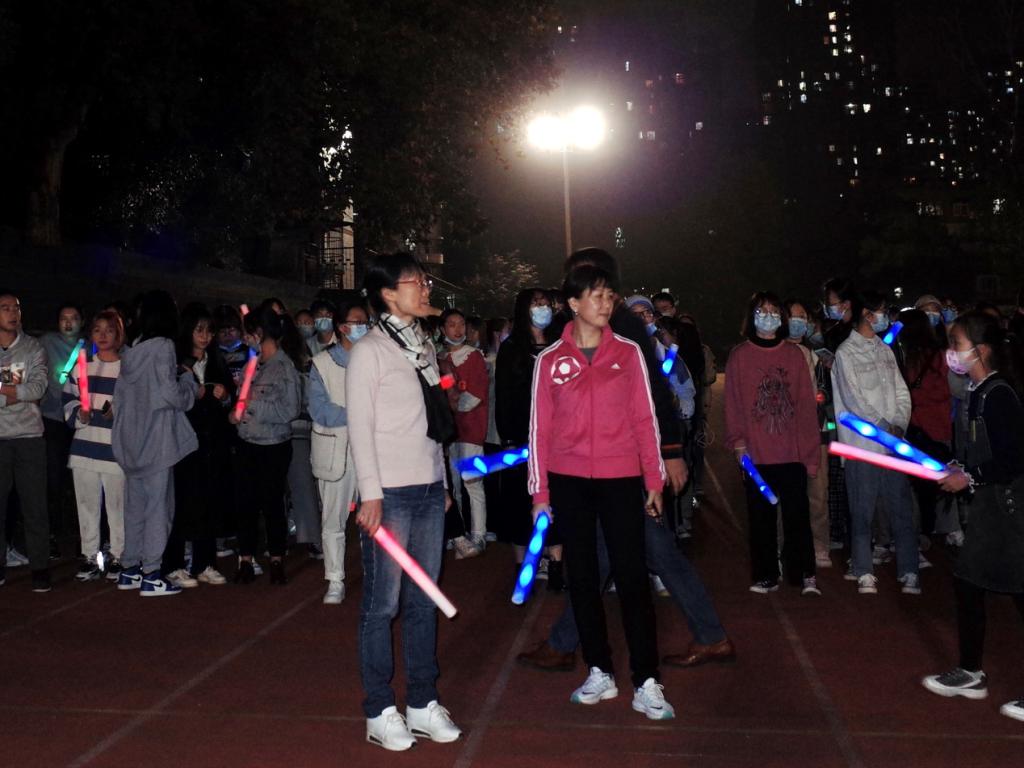 点亮荧光,跑向健康11月8日,中国体育博彩 “荧光夜跑”活动在南湖校区田径场举行中国体育博彩 院长陶辉教授、党委副书记黄勇、各年级辅导员、专业老师代表和学生们相聚在此,共同参加集体夜跑和趣味闯关。