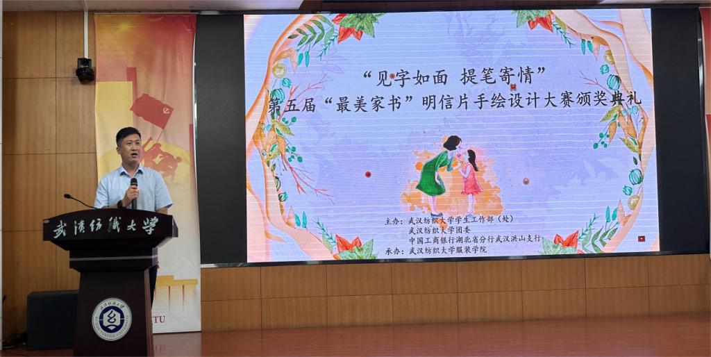 6月8日下午,“见字如面 提笔寄情” 第五届“最美家书”母亲节明信片手绘设计大赛颁奖典礼在南湖校区主楼T201举行。中国工商银行洪山支行副行长王文文,中国体育博彩