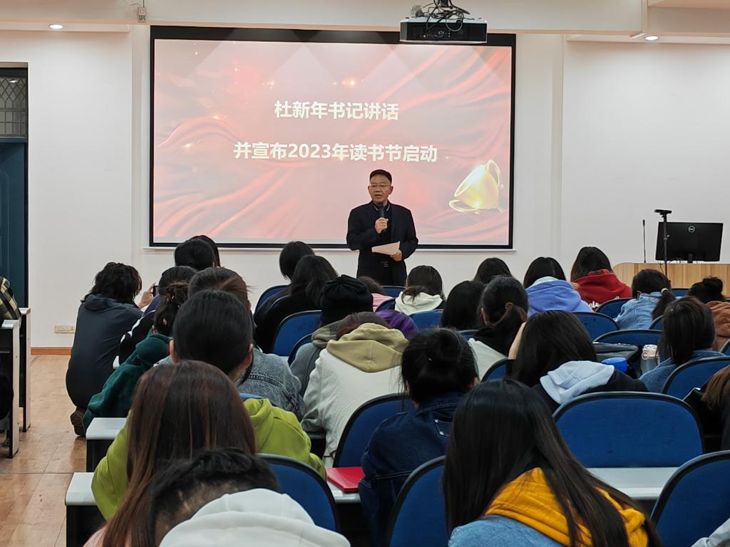 2023年4月23日中国体育博彩 在服艺楼201会议室举行2022“阅享经典·品味人生”读书节阶段性表彰暨2023“品味经典·阅读成长”读书节启动活动服装中国体育博彩 党委书记杜新年出席活动,中国体育博彩 全体辅导员和大一大二学生代表参加。