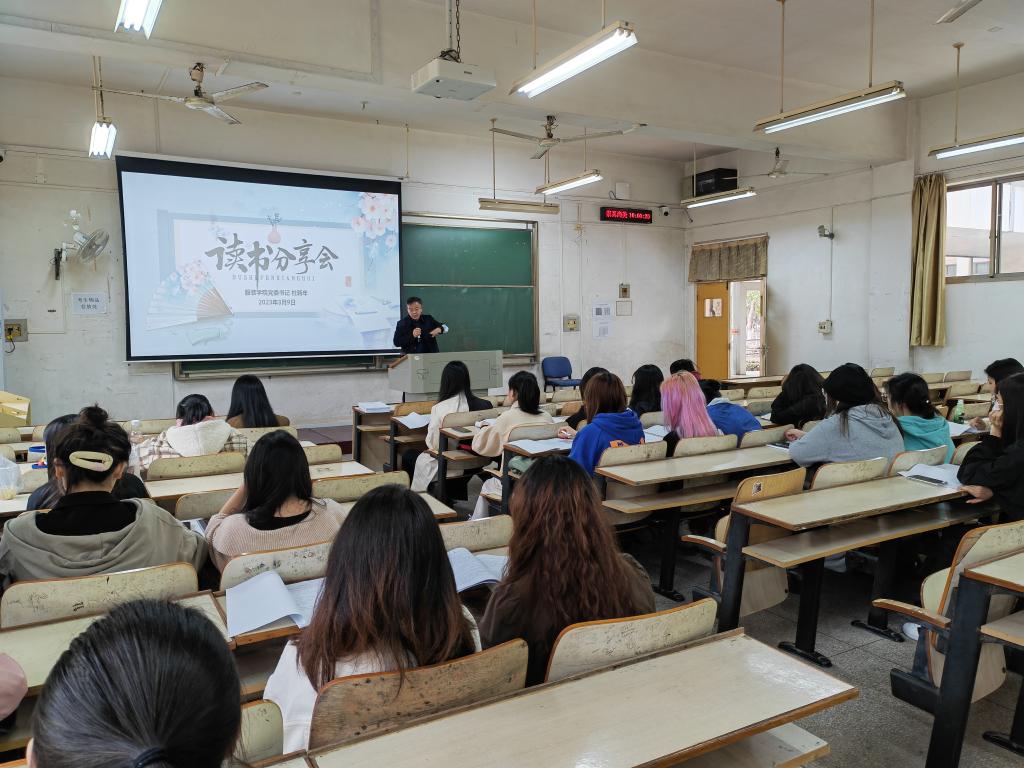 在尚知楼110教室开展《论语》师生共学交流活动,党委书记杜新年与30多名学生一起,分享《论语·学而篇》的学习感悟。