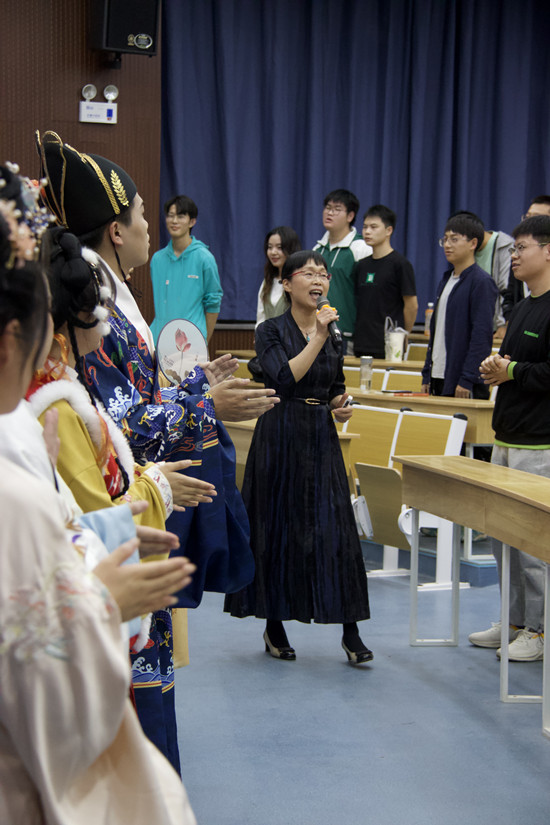“真是想不到,在聆听服装知识的课堂上,不仅能收获服装专业知识,还能激发爱国热情,集体齐唱《我和我的祖国》,感受到了拳拳赤子的爱国之心。”来自机械设计制造及其自动化专业的杨同学在课后激动地向陶教授表达了他激动的心情。