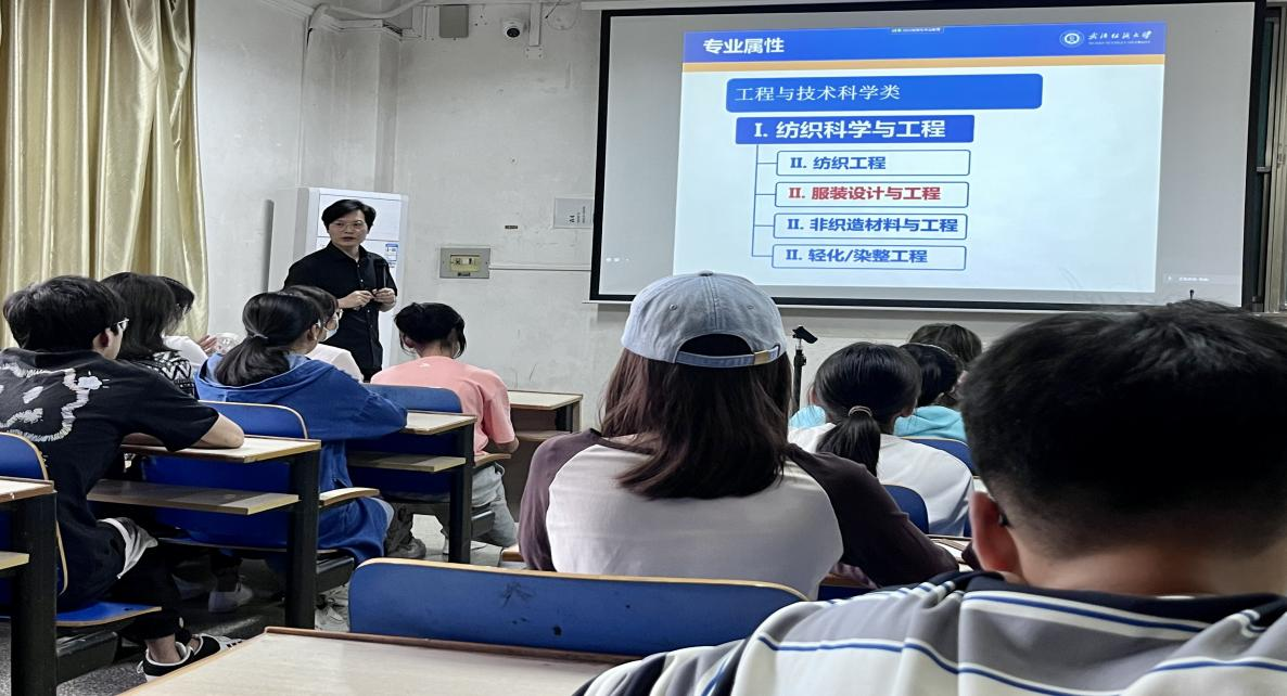 9月28日,张俊老师为服装设计与工程专业新生开展了专业介绍教育。 张俊老师从“服装设计与工程”专业“是什么”、“学什么”以及“做什么”三个维度进行了解读。张俊向同学们系统地介绍了本专业的基础课程、核心课程和实践课程,让同学们初步明确了学习方向;也向新生介绍了关于专业的就业前景,并鼓励学生打好基础,早做学业规划。