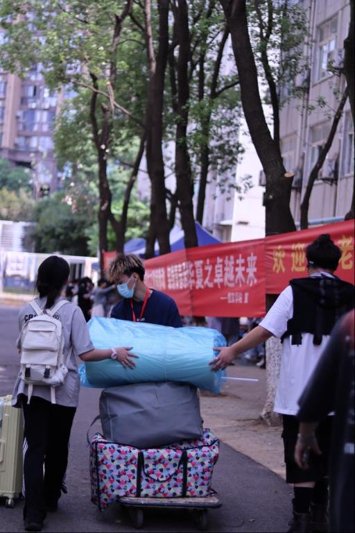 学生党员积极行动起来,参与到为新生送餐的活动中。不少学生党员、学生志愿者才放下为新生搬运好的行李,便马不停蹄地参与到为新生送餐的活动中,辗转奔波在一区二区各学生楼栋宿舍,滴下的是汗水,留下的是温暖,他们用实际行动践行着伟大建党精神,用真诚奉献诠释着志愿者精神。