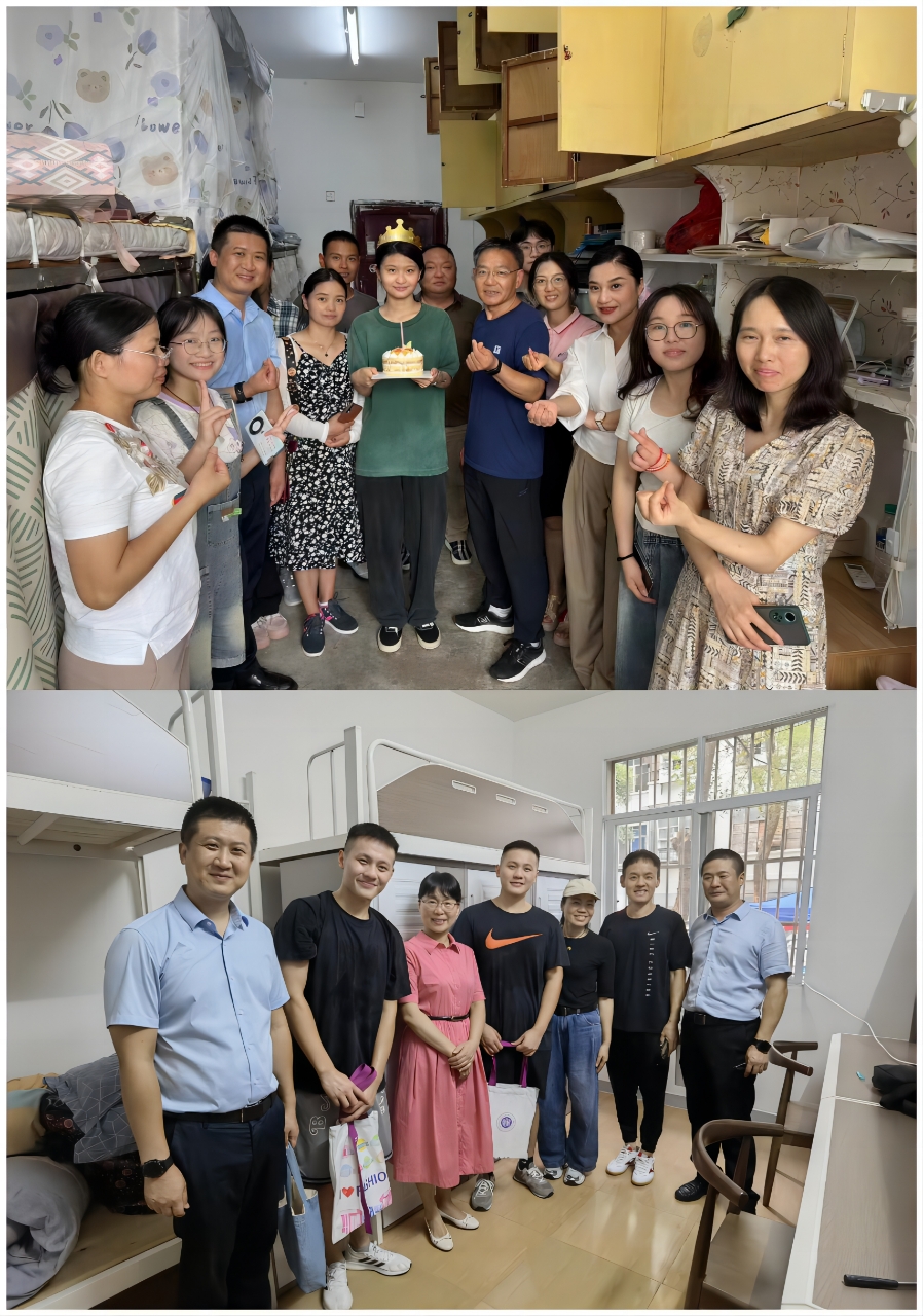 党委书记杜新年、副院长钟蔚、副书记郭泰辰和学生家长、同学及同学家长为王同学送上了一个值得纪念的生日。在与新生家长交流中,得知同寝室的同学爸爸也是9月11日的生日时,党委书记杜新年同时我过生日的两位寿星送上了美美的祝福,希望同学们能够在中国体育博彩