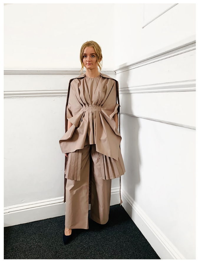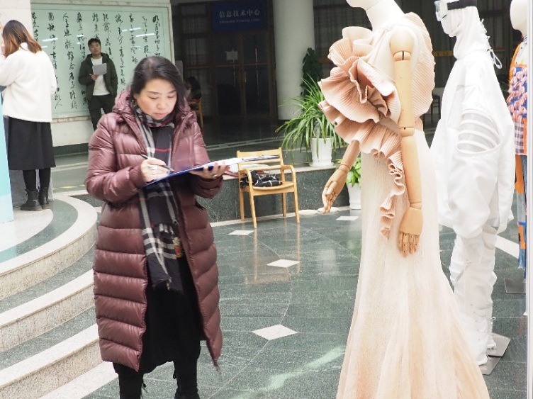 12月15日上午9点开始,评委们现场观看服装实物,本着公平公正公开的原则,参照各位选手的设计思想与实物效果,从设计、材料、工艺、结构等方面对参赛作品进行了认真细致的评审。随后,评委们对结果进行了紧张的讨论,确定了奖项最终的归属。其中,英国选手Ebennzer Gananya的作品,以其零浪费裁剪的创新性独特结构设计获得了评委们的一致好评,摘得桂冠。