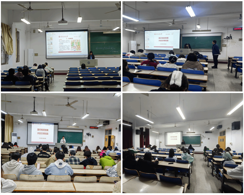 老师们结合《武汉纺织大学学生手册》从学习纪律、生活纪律、行为纪律三方面进行了校纪班规的宣讲。向同学们强调要按时上课、不迟到、不早退、不旷课。认真听讲,积极参与课堂讨论,按时完成作业和实践报告。遵守考试纪律,诚信考试,不作弊、不抄袭;保持个人卫生和宿舍卫生,维护良好的生活环境。遵守作息时间,按时起床、就寝,保证充足的睡眠。爱护公共财物,不损坏校园设施;尊重师长,团结同学,文明礼貌待人。不打架斗殴,不酗酒吸烟,不参与赌博等违法违纪行为。遵守网络道德,不传播不良信息,不发表不当言论。