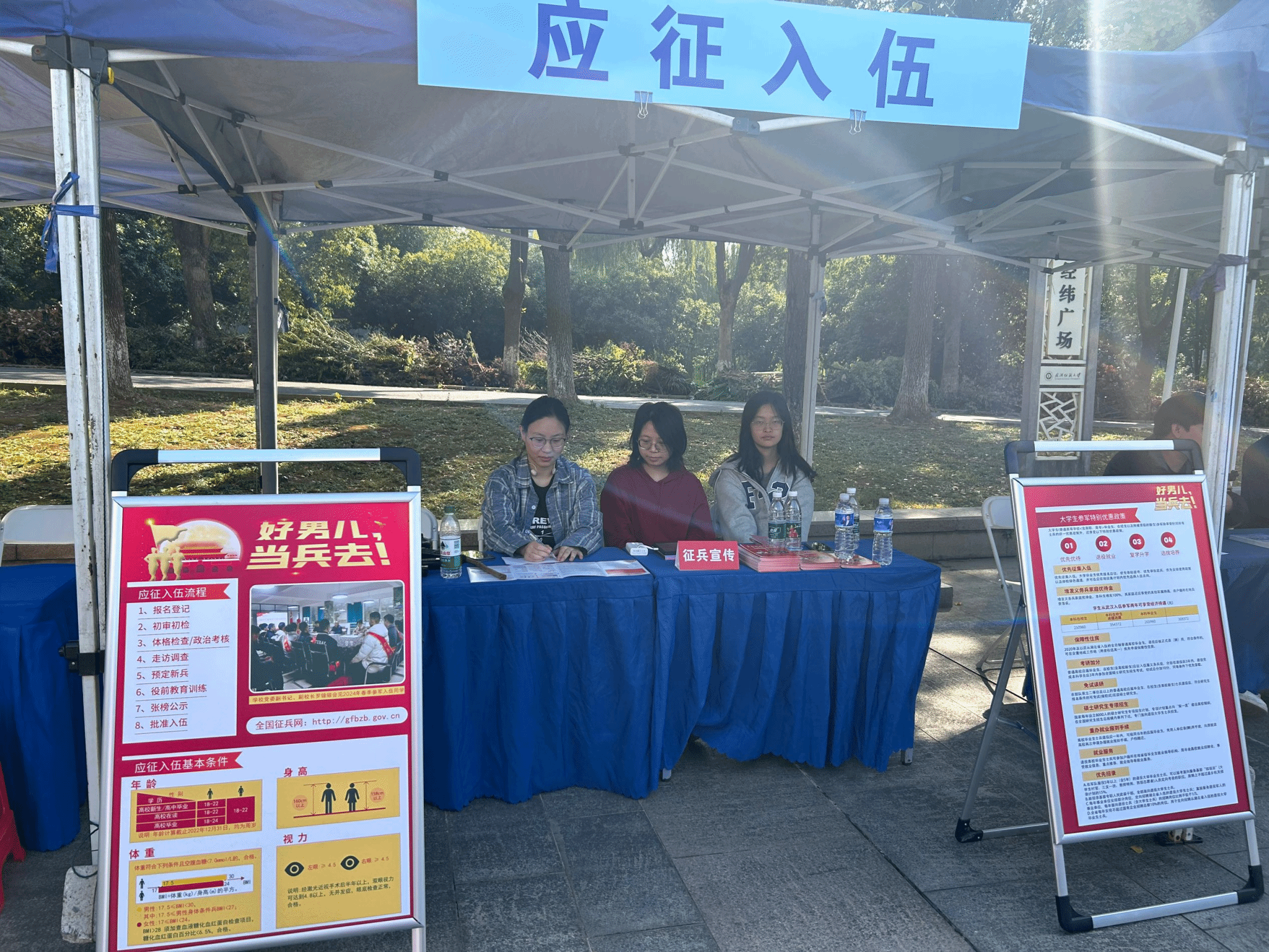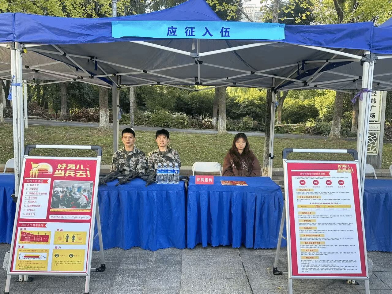 在南湖校区西二门广场举办了征兵宣传活动,旨在鼓励更多青年学子积极投身军旅,展现爱国情怀,同时助力秋季校园招聘工作同步推进。此次活动得到了中国体育博彩