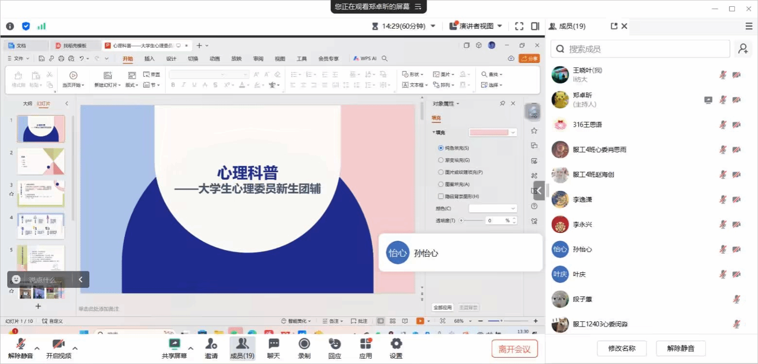 心理工作站在线上举办了大学生心理委员新生团辅,心理工作站成员和各班心理委员参加了本次活动。