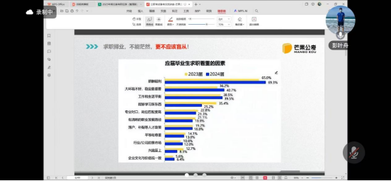 活动期间,学校针对考研复试、求职工作、考公考编等不同群体,联合校外职业发展机构开展系列活动,结合各类就业需求精心做好观念引导和求职赋能。同时,学校从简历制作、面试辅导、职业素养提升等方面,为毕业生提供有针对性的“云训练”、“云课堂”,帮助毕业生解决实际困难、化解焦虑情绪,帮助学生尽早就业、顺利就业。