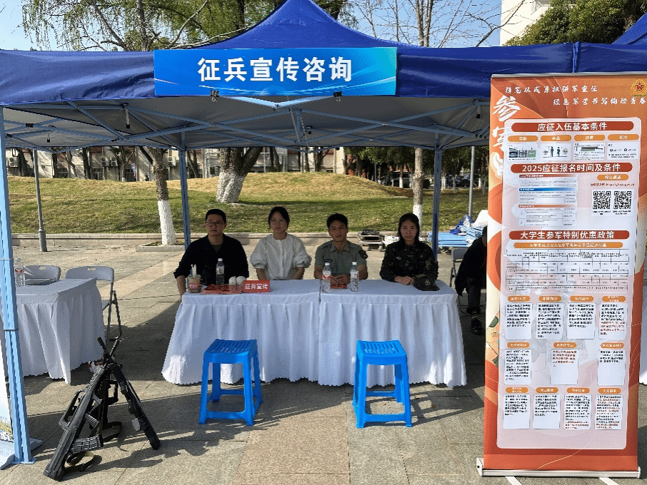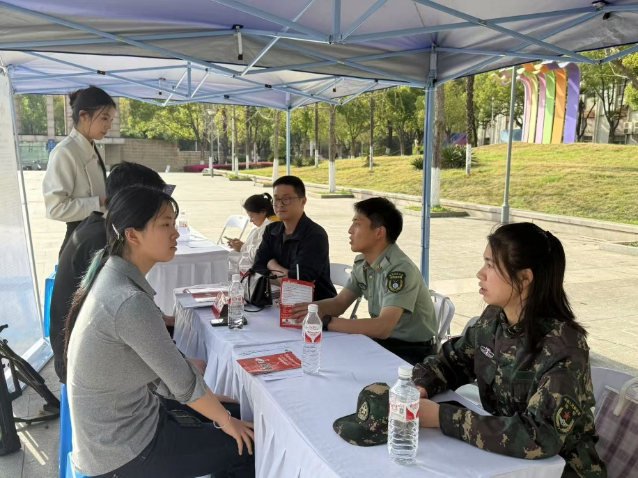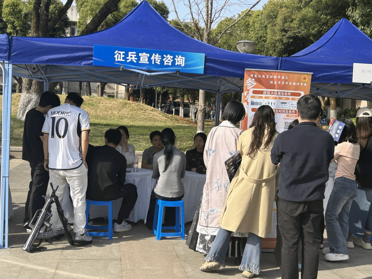 承办的学校2025年秋季征兵宣传活动在南湖校区经纬广场举行。