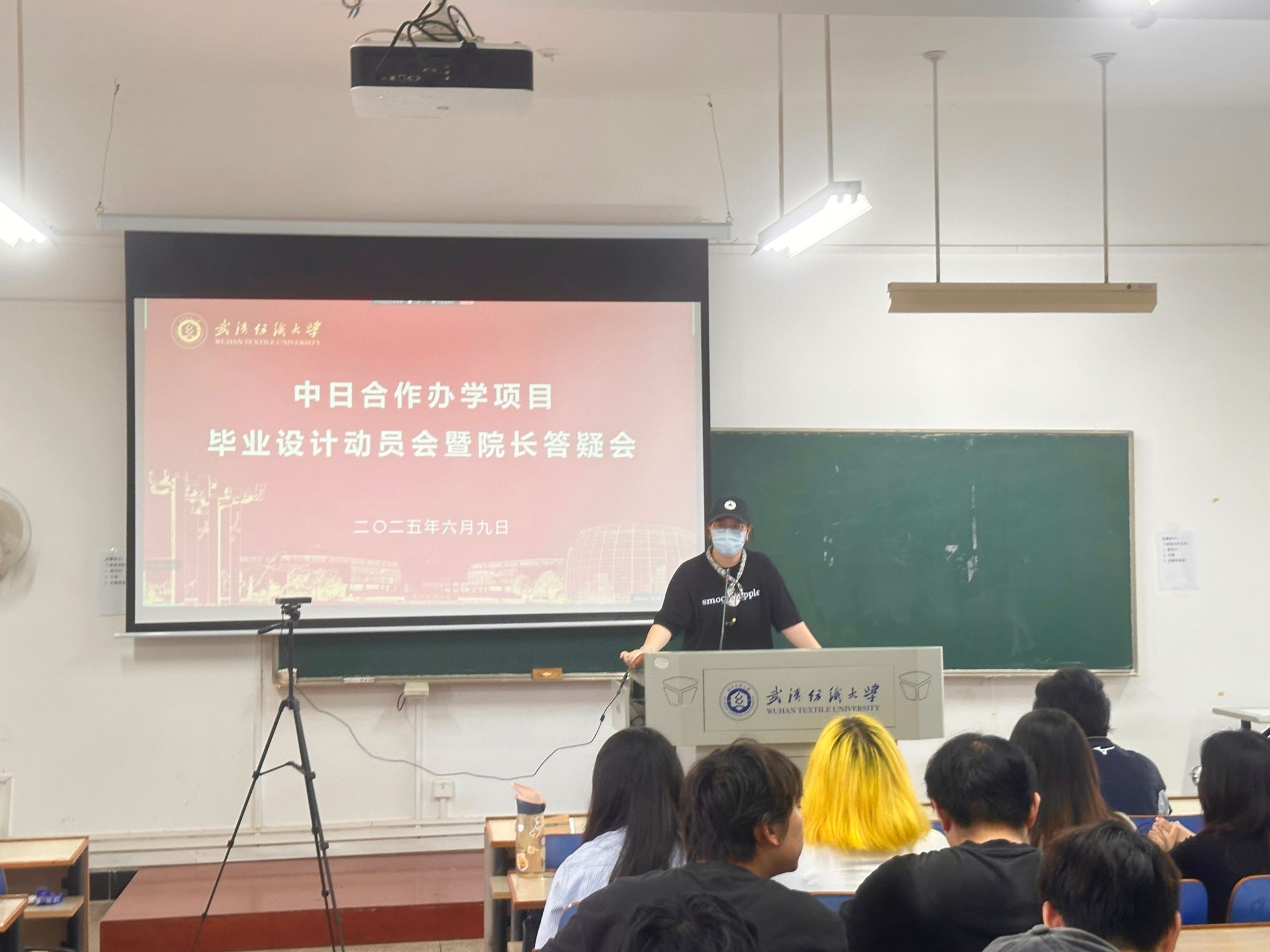 陶辉院长对中日班同学的学习表现予以肯定,并点赞了近几年中日班学生在国内外赛事和中国国际大学生时装周的优秀表现。同时陶院长建议中日班学生在未来的毕业设计中能在面料运用、廓形设计等方面有前瞻性与技术创新性。并从两方面给出设计思考的方向:其一,不同历史时代皆有独特时尚,可对传统文化进行再创造,融合外来文化,借助新型材料开展中国服饰设计;其二,作为设计师,要着眼于可持续发展,应深化对可持续理念的践行,将时尚和可持续设计结合。