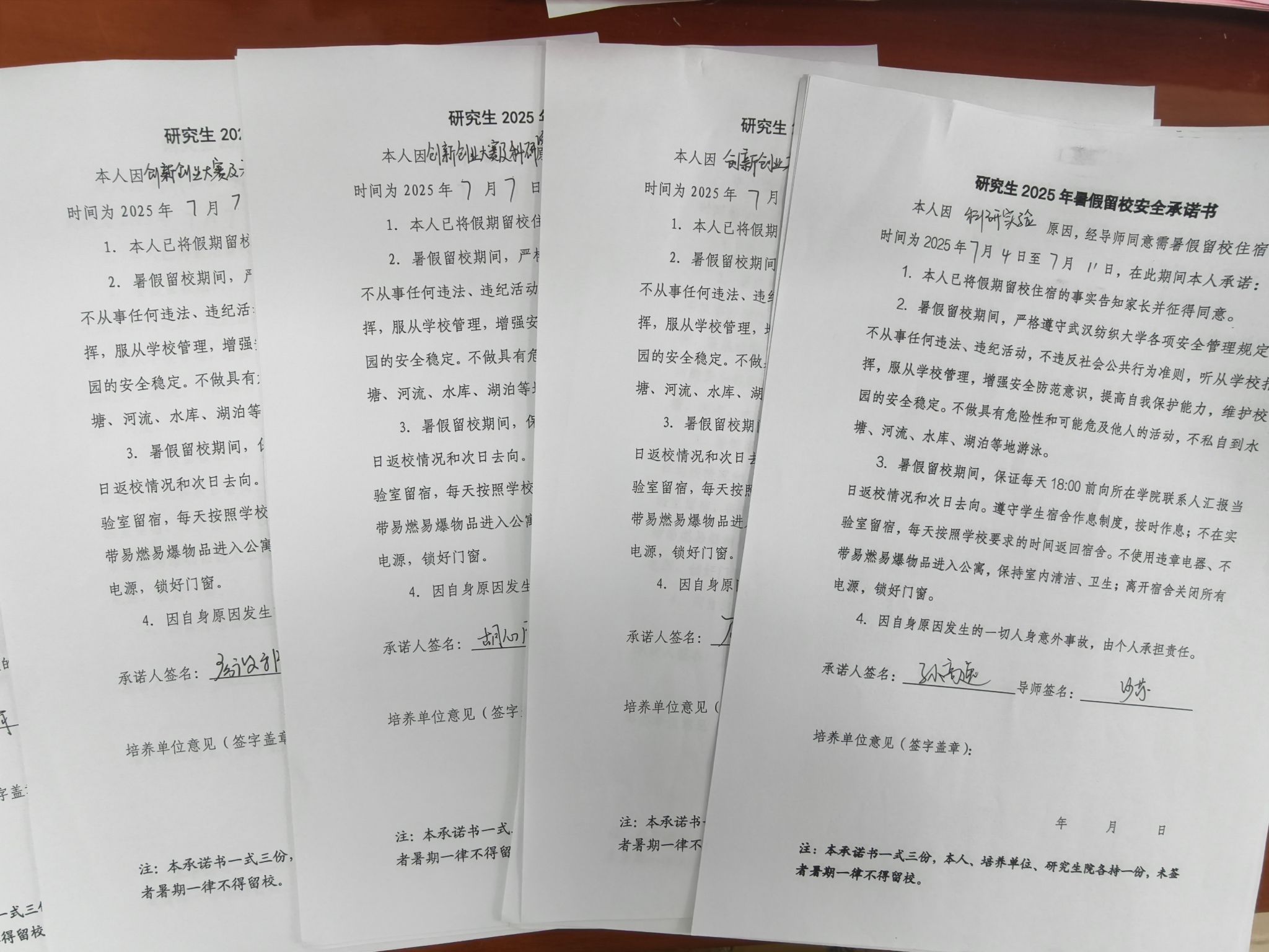 会议伊始,全体留校研究生现场签署《研究生2025年暑期留校安全承诺书》。承诺书涵盖宿舍安全、实验室规范、应急处置等具体要求,通过“签字立约”的仪式感,进一步压实学生安全主体责任。