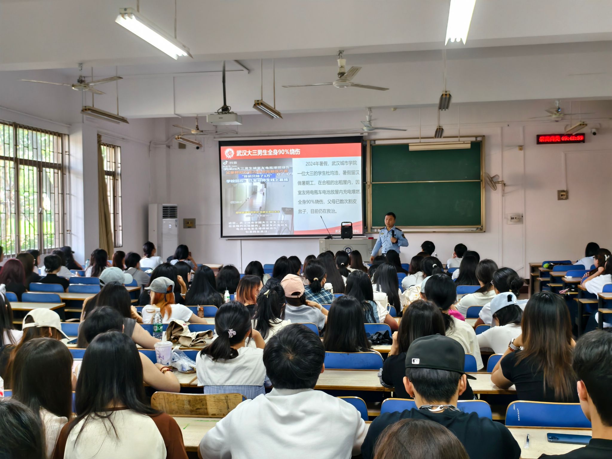 特别邀请到消防中心的易教官为全体2024级、2025级研究生开展消防安全专题教育。易教官结合高校校园安全案例,以生动形象的语言,从宿舍安全、电动车安全、实验室安全三个核心维度展开详细讲解。在宿舍安全方面,易教官重点强调了违规电器使用的危害,通过展示因使用大功率电器引发火灾的真实图片与视频,让同学们深刻认识到规范用电的重要性,并详细介绍了宿舍火灾预防措施、初期火灾扑救方法以及火灾逃生技巧;针对电动车安全,易教官围绕电动车违规充电的风险、校园内电动车停放规范等内容进行说明,提醒同学们切勿在楼道、宿舍内为电动车及电池充电,避免安全事故发生;在实验室安全板块,结合中国体育博彩