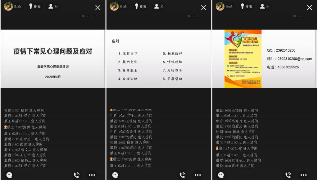 会上,罗老师再次强调,在当下疫情防控期间,心理委员更要发挥积极作用,普及和宣传心理健康知识,传播心理调适技能,积极关注关心同学,主动给与朋辈支持,帮助同学们在宅家抗疫这个特殊时期保持积极心态,积极有效的生活学习。