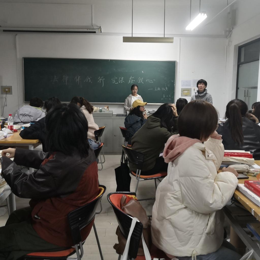 会上,班委领班级同学一起学习宪法的基本知识,学习宪法关于公民权利与义务的相关知识,学习宪法日设立的相关知识,从而帮助学生增强法律意识,勇于维护宪法和法律权威。