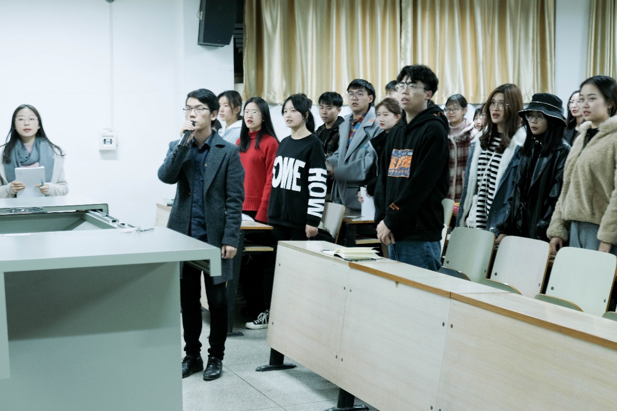宣誓结束后,本次团课正式拉开序幕。李昆老师开始从团的纪律讲到共青团员的权利与义务,让我们进一步学习了中国共青团的相关知识,更加深入的认识到了成为一名优秀的共青团员的意义。