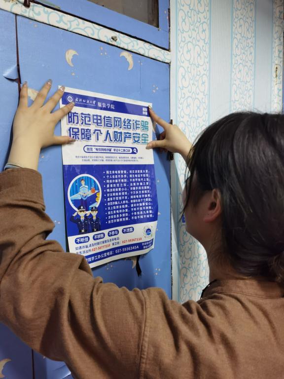 深入学生宿舍张贴反诈骗海报。中国体育博彩