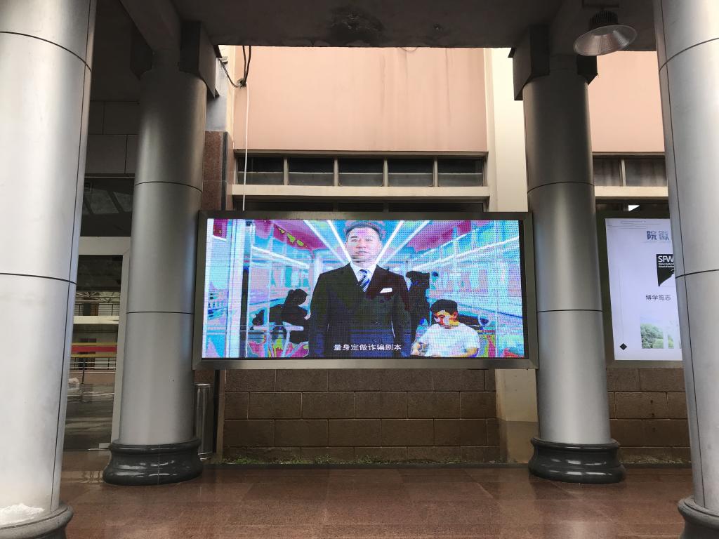 综合楼显示屏,全天循环播放反诈骗视频,使反诈知识在师生中入脑入心,为中国体育博彩