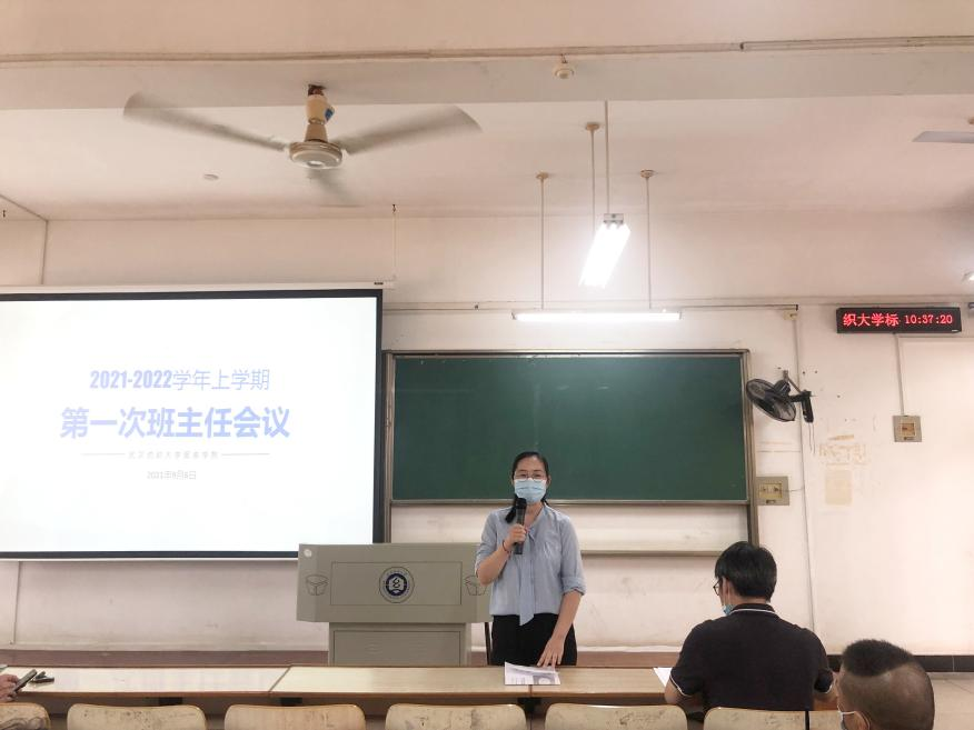 会上,中日11902班班主任张元美作为优秀班主任代表对班主任的工作进行了经验分享,强调了要注意与学生进行心与心的交流,并表示要充分发挥班主任的作用开展学风建设促进学生主动学习。辅导员卫周瑶宣读《武汉纺织大学本科生班主任管理办法》,针对目前工作中的重点、难点问题,从班级管理、班集体建设、学生心理健康教育、学生实习就业指导等方面进行了讲解说明,梳理了班主任的岗位职责。