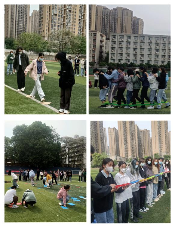 的四支队伍进行了激烈的比拼。在各领队的指挥下,大家发挥集体智慧,团结协作,配合默契,挥洒青春,操场上充满了大家的欢声笑语。
