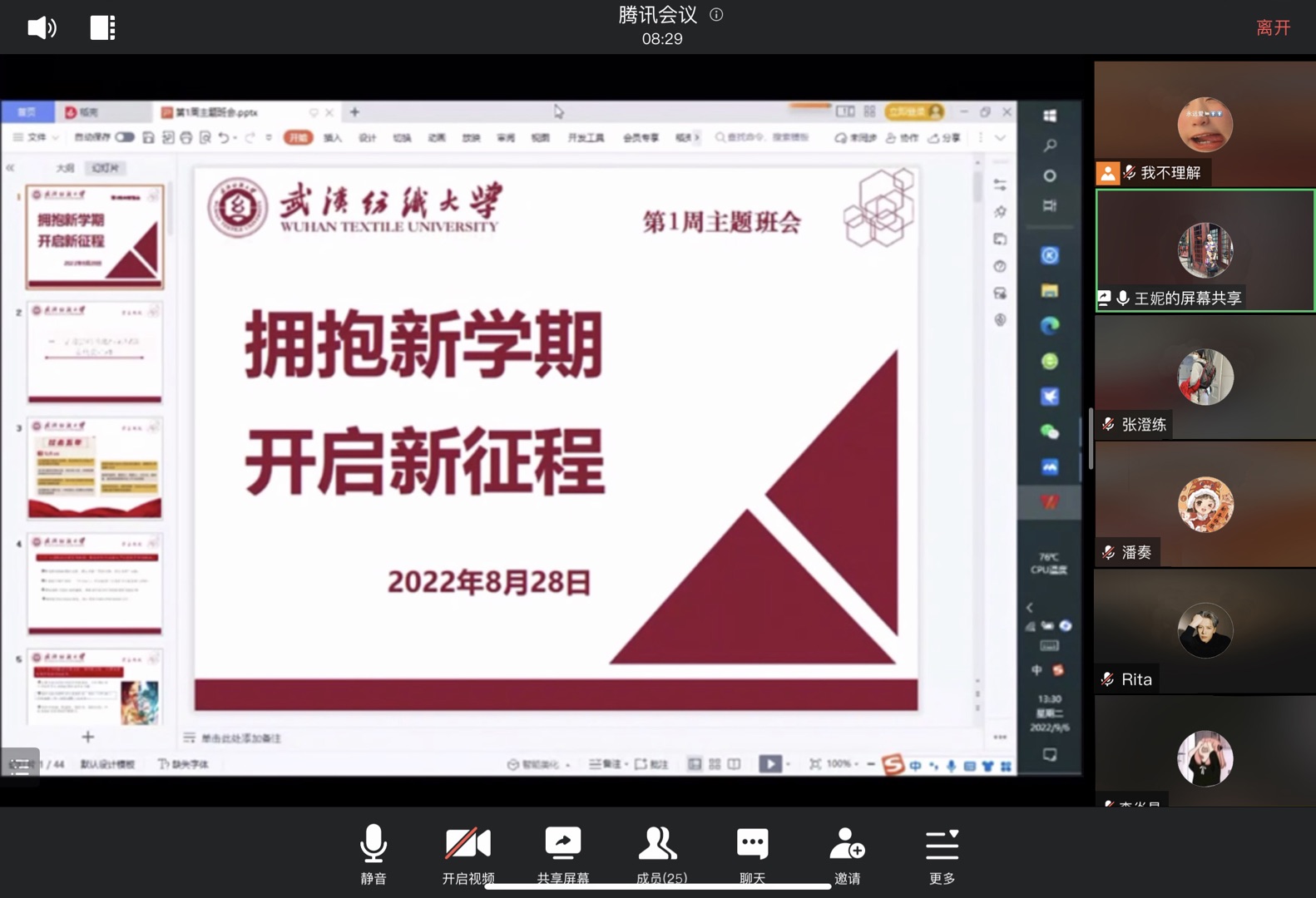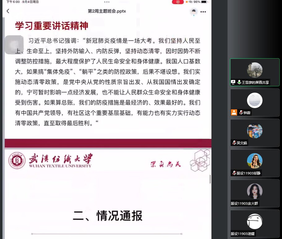 于2022年8月28日召开了新学期第一次晚点名主题班会,各年级辅导员、班主任全面摸排学生信息,做好学生返校前交通安全、人身财产安全和疫情防控等方面安全教育,确保每位学生掌握旅途防护措施,增强学生科学防控意识,时刻关注学生的心理状况,加强心理健康疏导,引导学生有序返校。