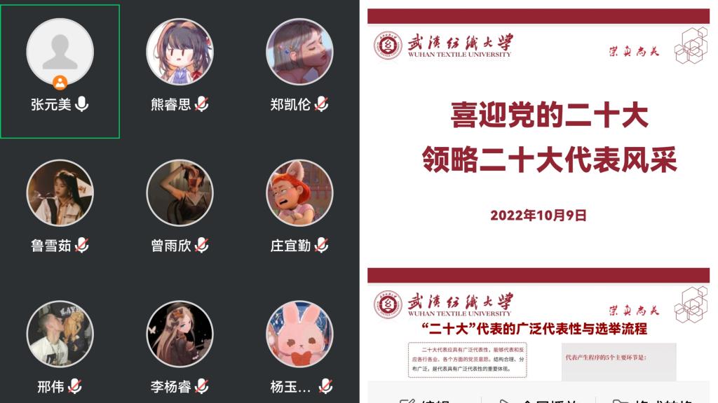 召开了晚点名主题班会,各年级辅导员、班主任以“青春献礼二十大,强国有我新征程”为主题,组织同学们学习了“二十大”代表的选举流程及广泛代表性的特点,领略了二十大代表路丙辉、于吉红、袁红梅的风采。会上,同学们聆听校党委书记田辉玉在2022级新生开学典礼上的讲话,寄语同学们要续写新时代新青年的青春新华章,同时,各年级辅导员向班级同学介绍了世界精神卫生日的由来,引导同学们关注自身心理健康,动员学生积极参与心理健康教育系列活动。