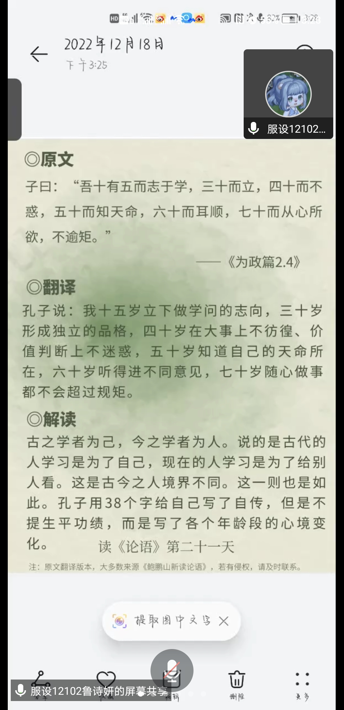 当代著名学者、中国孔子研究院院长杨朝明曾在央视《开讲啦》这样说道:“如果把中华文明比喻成一棵大树,这棵大树的主干就是儒家文化,大树的根部则是孔子,以及包括孔子在内的先哲们。大树树干之所以粗壮,就是因为大树的根扎得深扎得牢。”为让服装学子们学习和了解儒家文化了解中华文化,12月18日15:00,我院“声色纺大”诵读协会在线上组织30多位同学,开展了线上《论语》学习交流活动,这也是中国体育博彩