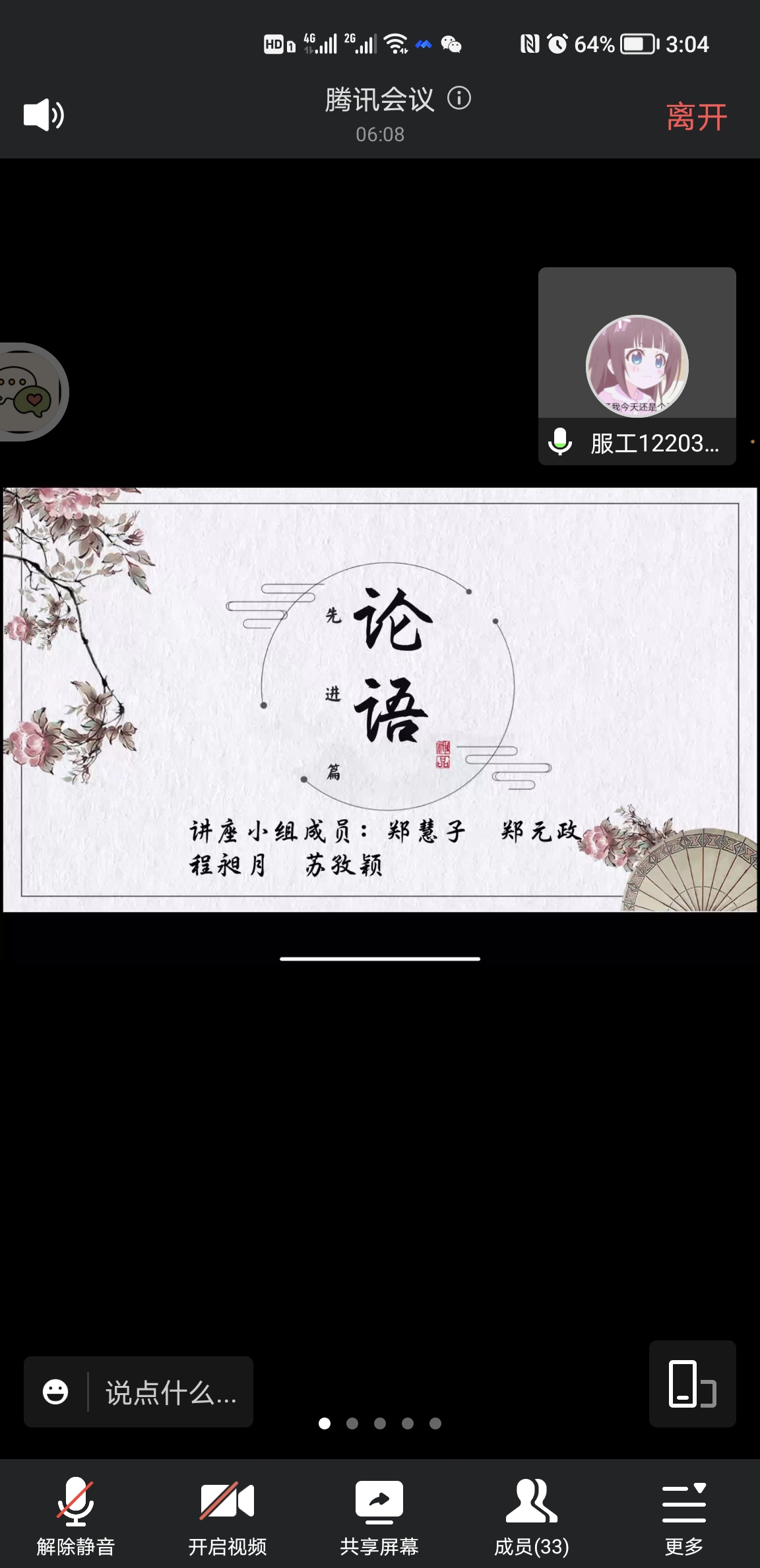 本次活动才发布通知短短两天,就有5组同学踊跃报名参与分享。虽然不少同学身体健康也有一些状况,但是整场活动下来,同学们都展现出自己小组的特色,也表现出了对《论语》活动的浓厚兴趣。