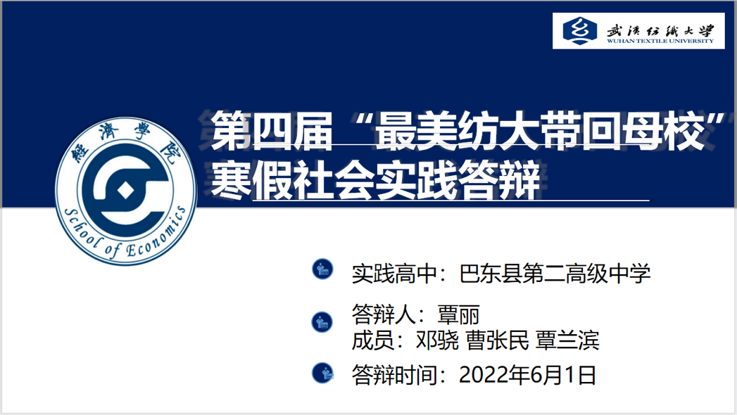 的覃丽同学也在第四届“把最美纺大带回母校”活动中荣获校级一等奖。她通过展示、讲解答辩幻灯片向同学们分享活动经验。覃丽团队在整个活动中分工明确,为参会同学们展示了一次流畅完整的活动过程,为我院立项团队成员提供了丰富的经验和诸多可借鉴的方法。