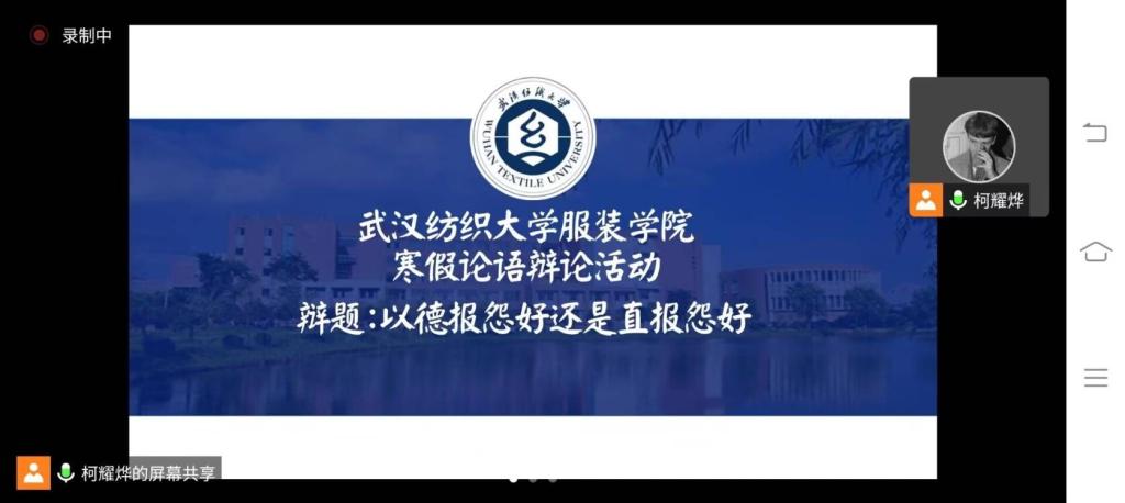 我国古代思想家墨子曾说:“夫辩者,将以明是非之分,审治乱之纪,明同异之处,察明实之理。处利害,决嫌疑。”概括来说,辩论不仅可以提高我们格物致知,探求真理,明辨是非,捍卫真理的能力,还能锻炼思维,培养口才,增进了解,促进沟通。2月7日下午3点,我院“声色纺大”诵读协会组织开展了辩题为“以德报怨好还是以直报怨”的线上辩论赛,本次是寒假《论语》学习交流最后一次活动。