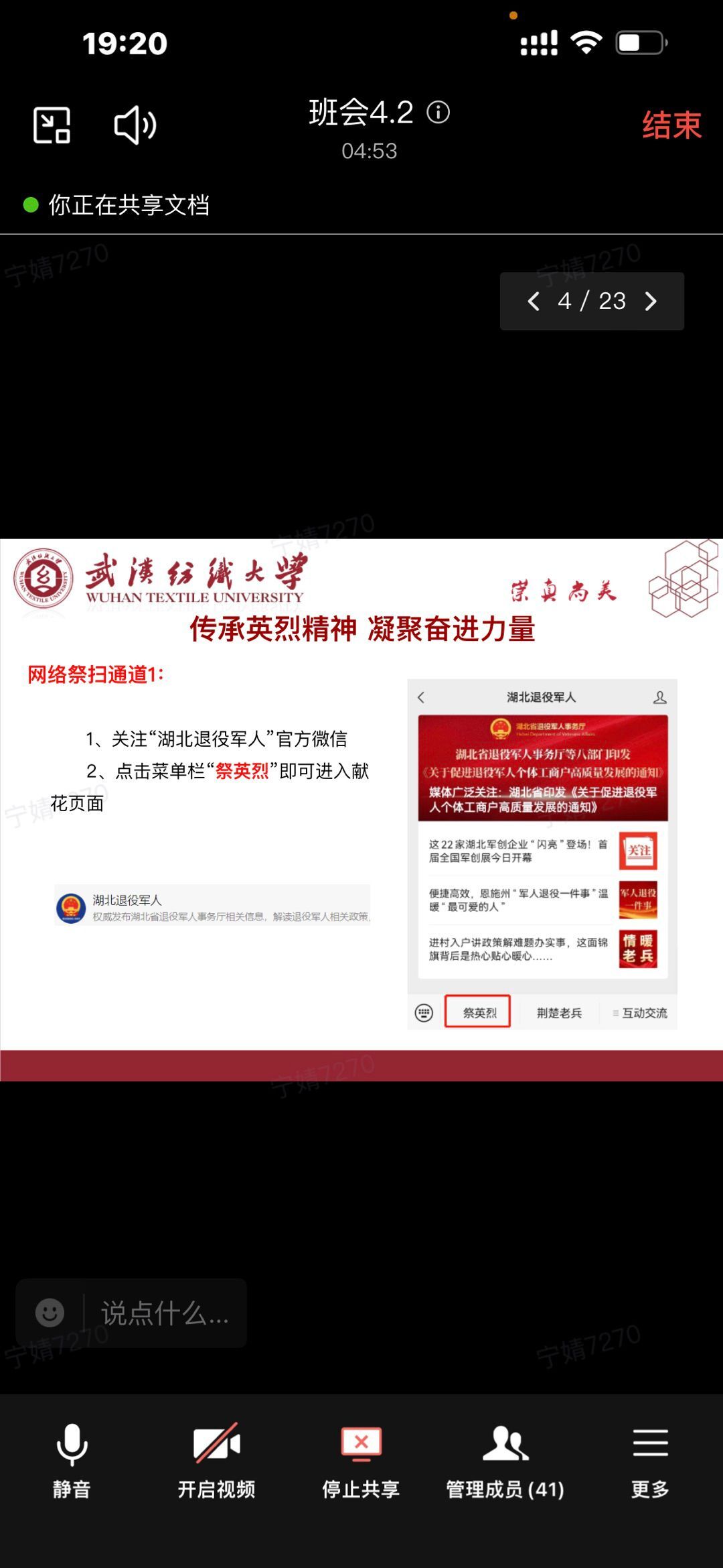 班会上,各年级辅导员、班主任开展了以“传承英烈精神 凝聚奋进力量”为主题的班会,向学生宣传“2023·崇尚·清明祭英烈”主题活动,引导学生通过“网上献花”的方式缅怀英烈、学习英烈、捍卫英烈。