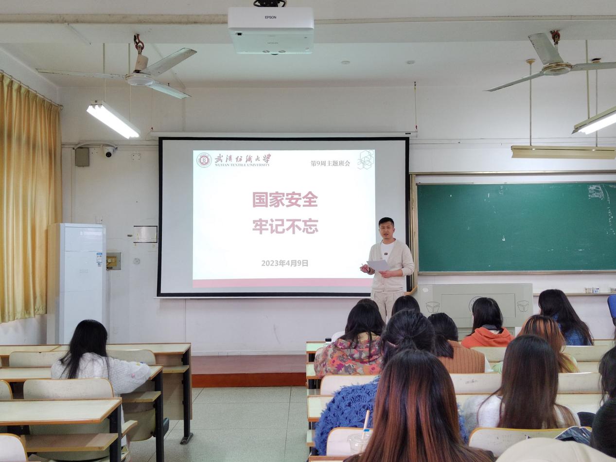 党委副书记郭泰辰于南湖校区尚知楼为服设12201班学生召开了“国家安全,牢记不忘”主题班会。