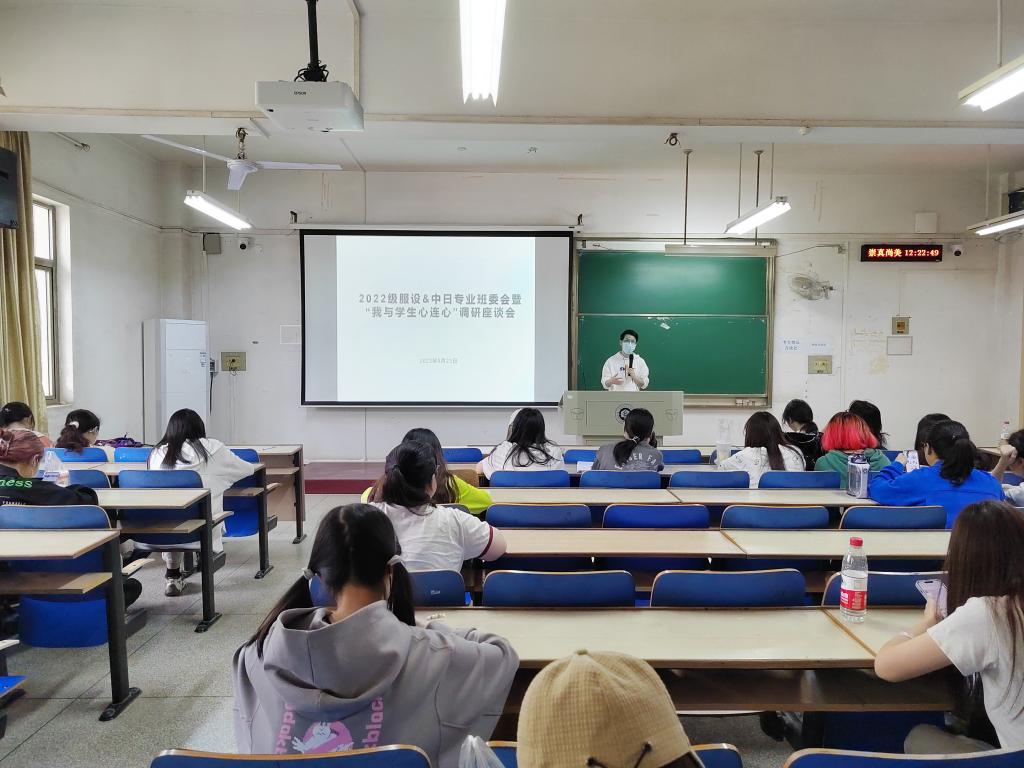 于尚知楼208教室召开了2022级服装与服饰专业、服装与服饰设计(中外合作办学)专业班委会暨“我与学生心连心”调研座谈会,各班班委及学生骨干(寝室长)参加了座谈会。本次会议由中国体育博彩