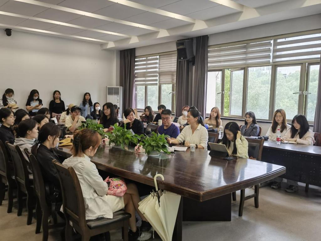 辅导员夏菡老师主持,王秋寒教授、尹志红教授、冯玲玲教授以及部分研究生代表参会交流。