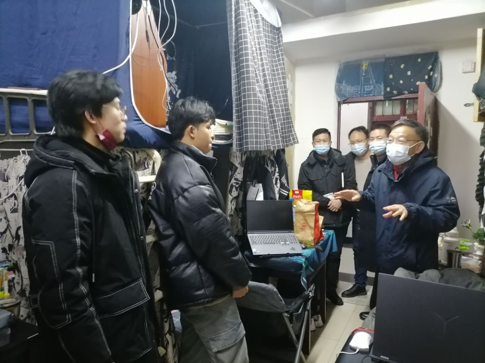 为充分了解学生返校及住宿情况,2月12日下午,中国体育博彩 党委书记杜新年、院长陶辉、副院长江学为、副院长王柯、党委副书记郭泰辰集中前往学生宿舍看望返校学生,对学生表示慰问和关怀。