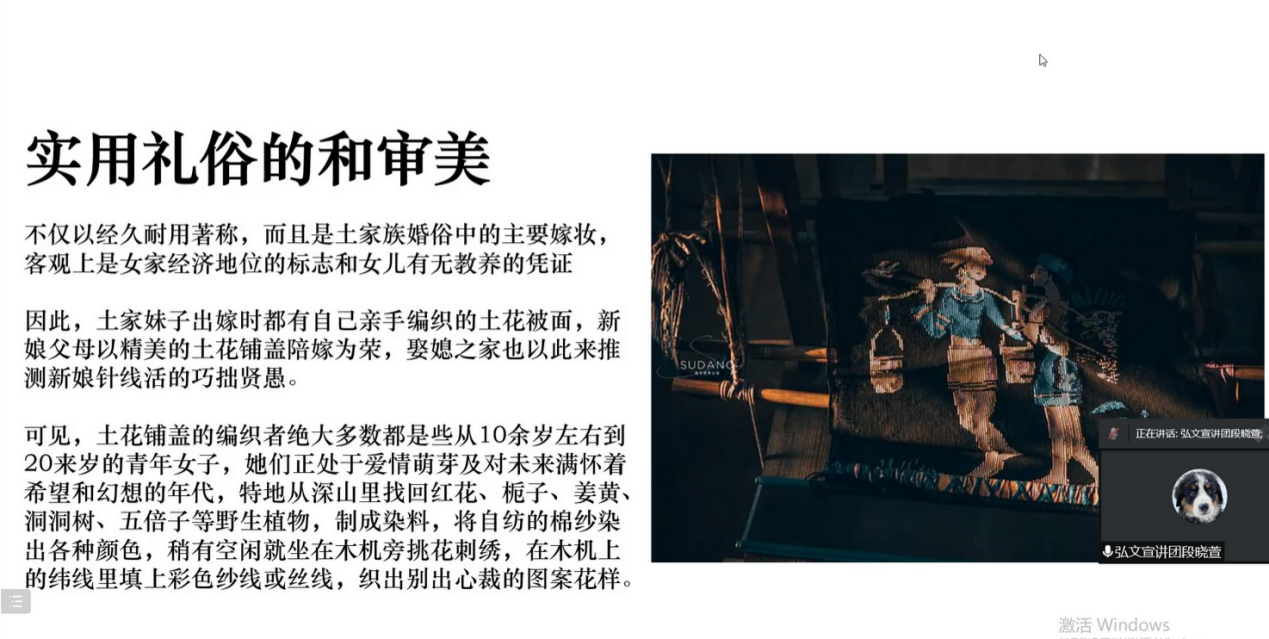 2022年6月2日晚8:00,“西兰卡普--触摸民族记忆,体验土家织锦”线上宣讲会第一讲在腾讯会议进行,有来自中国体育博彩