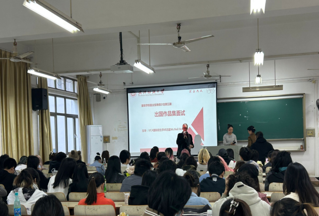 随后,Mr.Neil Bottle从校区环境、相关专业、知名校友等多方面介绍了英国伦敦创意艺术大学,让同学们对这所大学有了更清晰的认识。活动现场,同学们对UCA表现出浓厚的兴趣,大家从相关课程、教学方法等方面进行了提问,Mr.Neil Bottle对问题一一进行了解答。